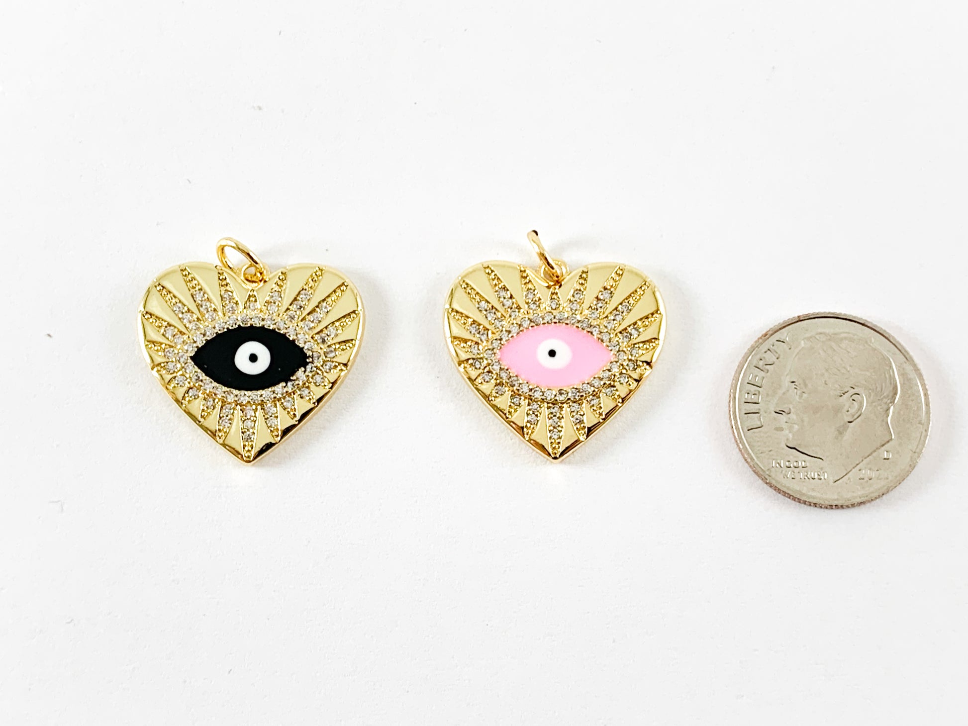Real 18K Gold Plated Heart Evil Eye Enamel Charms Over Copper 5PCS