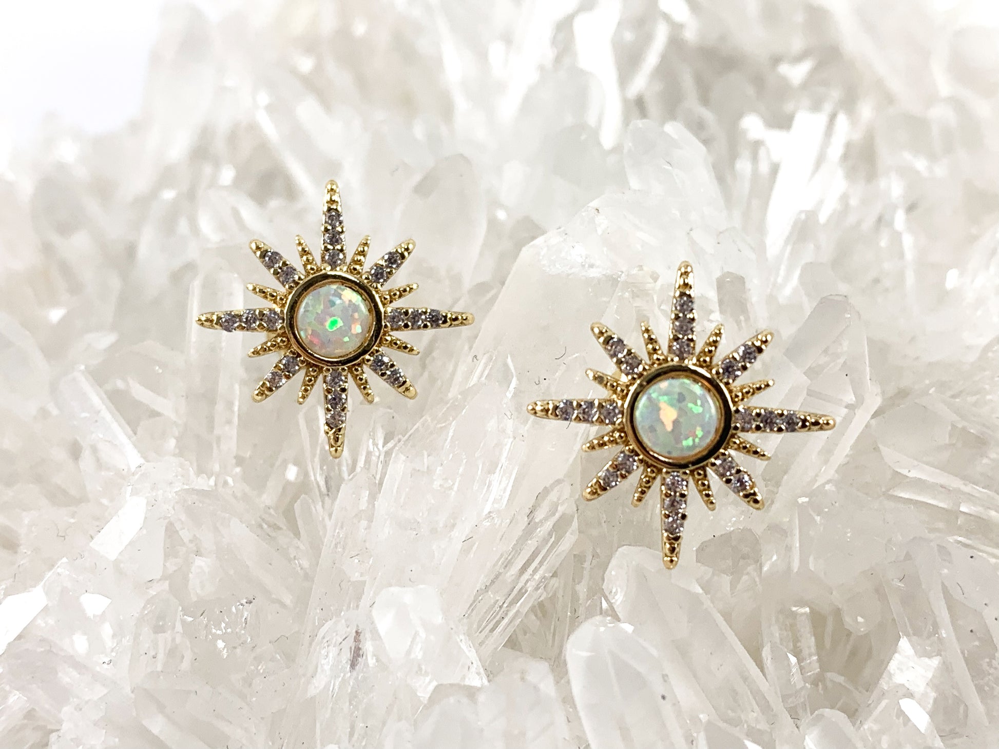 Real 18K Gold Plated Japanese Opal CZ Pave Starburst Earring Stud Component Over Copper 2 pairs