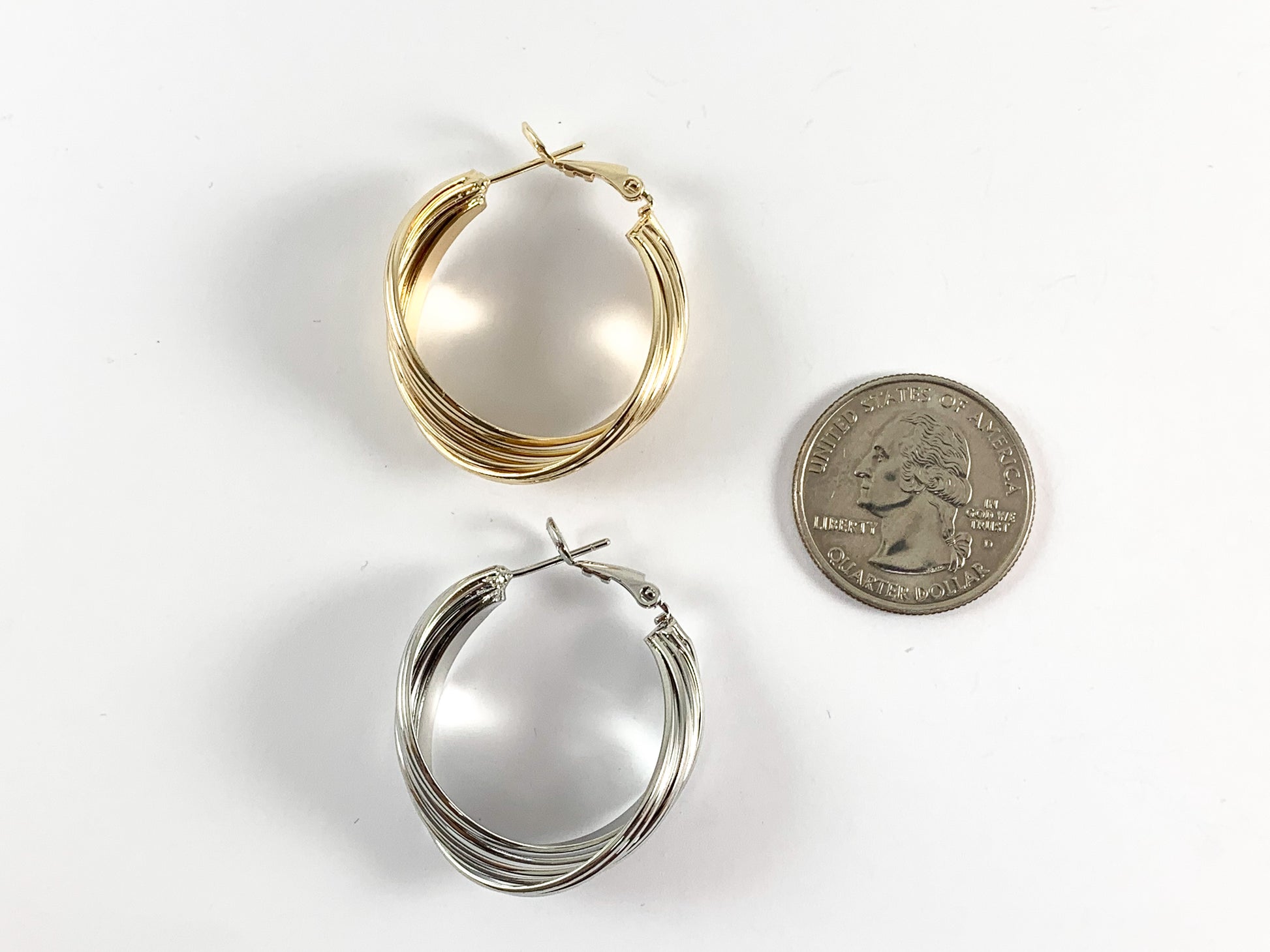 Real 18K Gold/Platinum Plated Bowtie Textured Twist Hoop Earring Over Copper 3 pairs