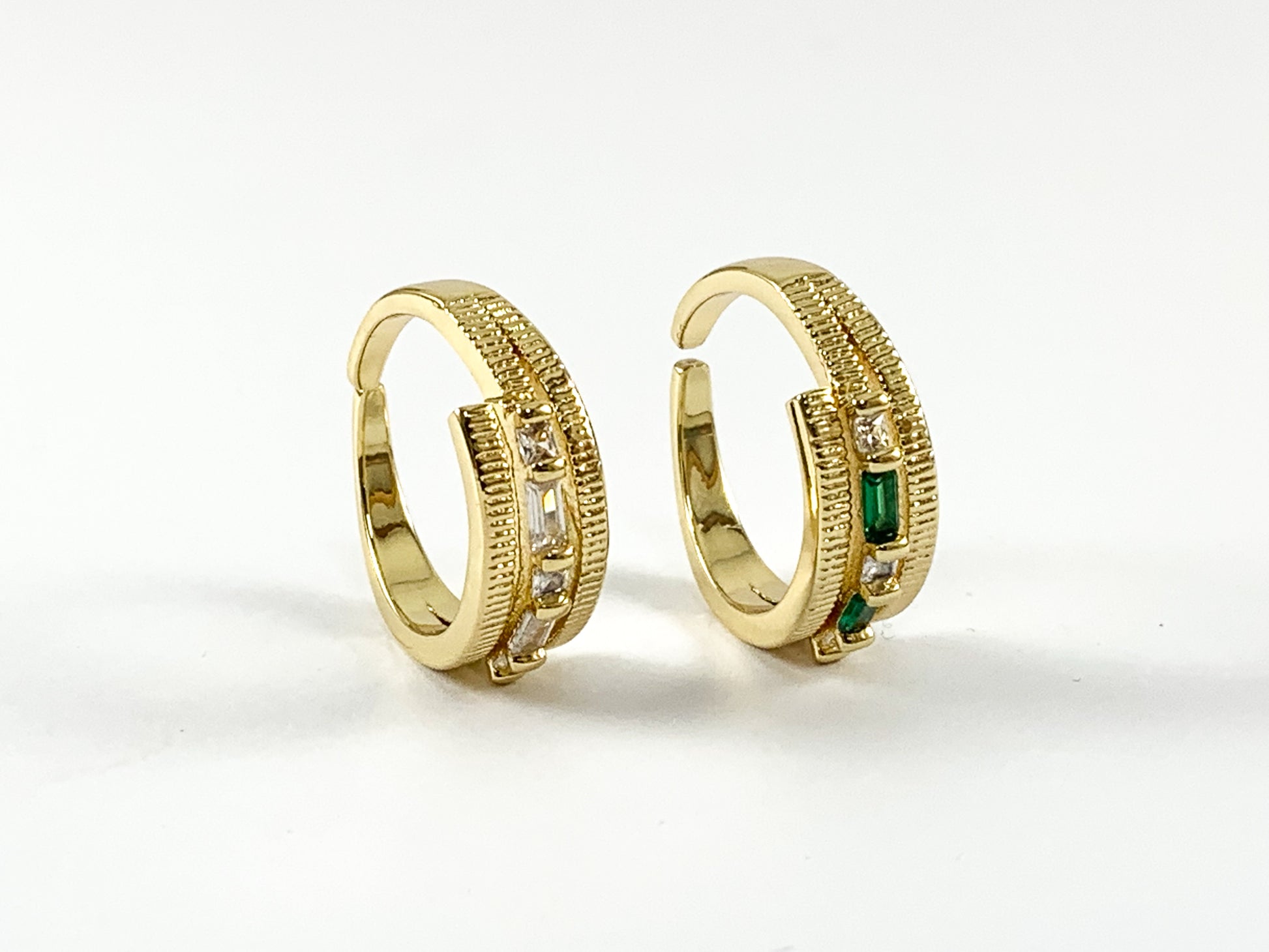 Real 18K Gold/Platinum Plated Copper CZ Pave Baguette Triple Bypass Adjustable Ring 4 pcs