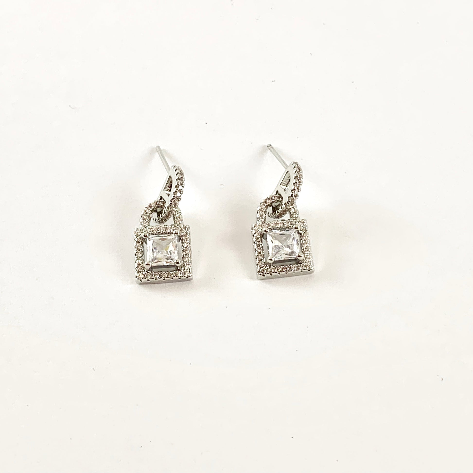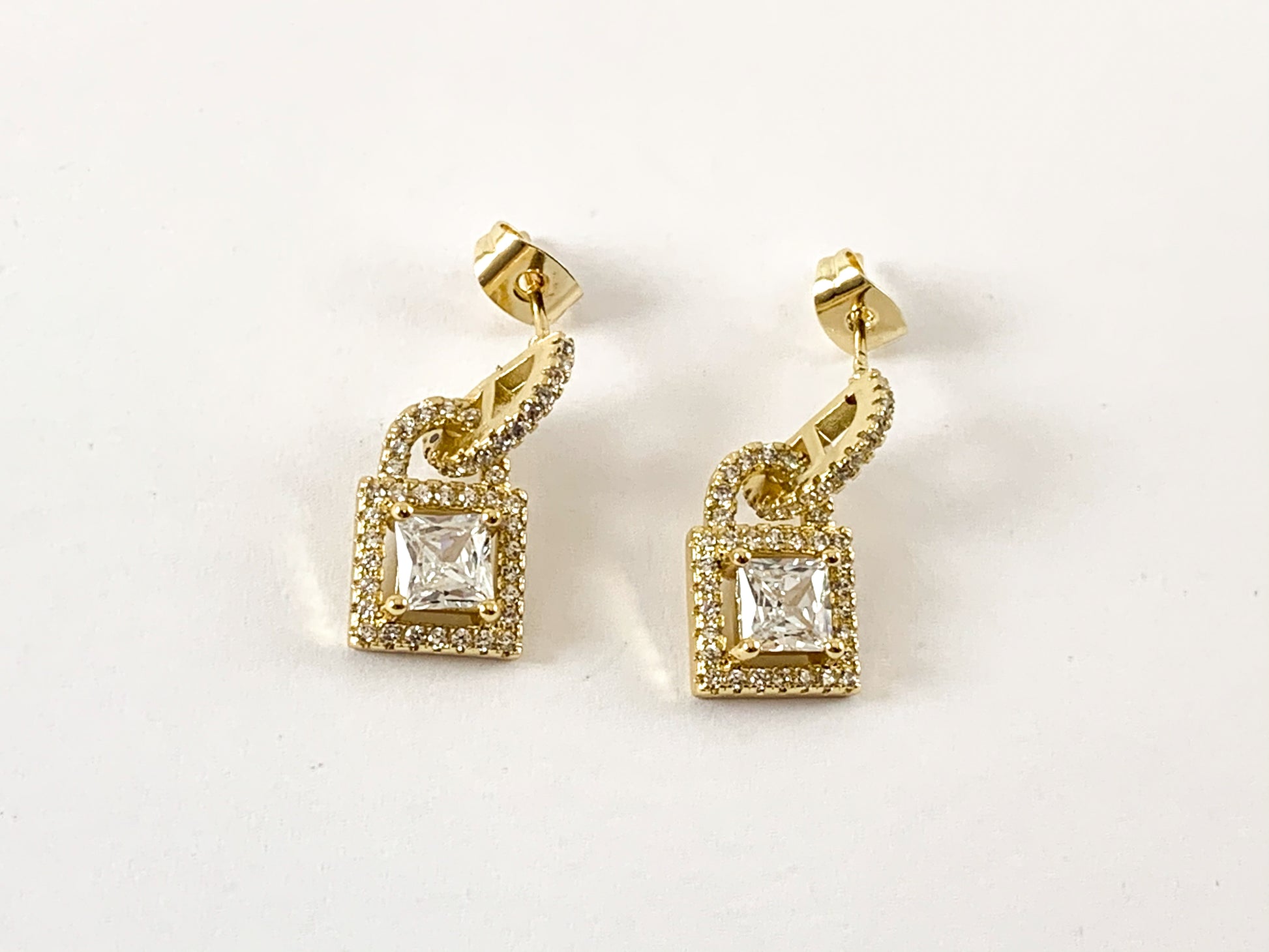 Real 18K Gold / Platinum Plated CZ Pave Locket Earrings Over Copper 3pairs
