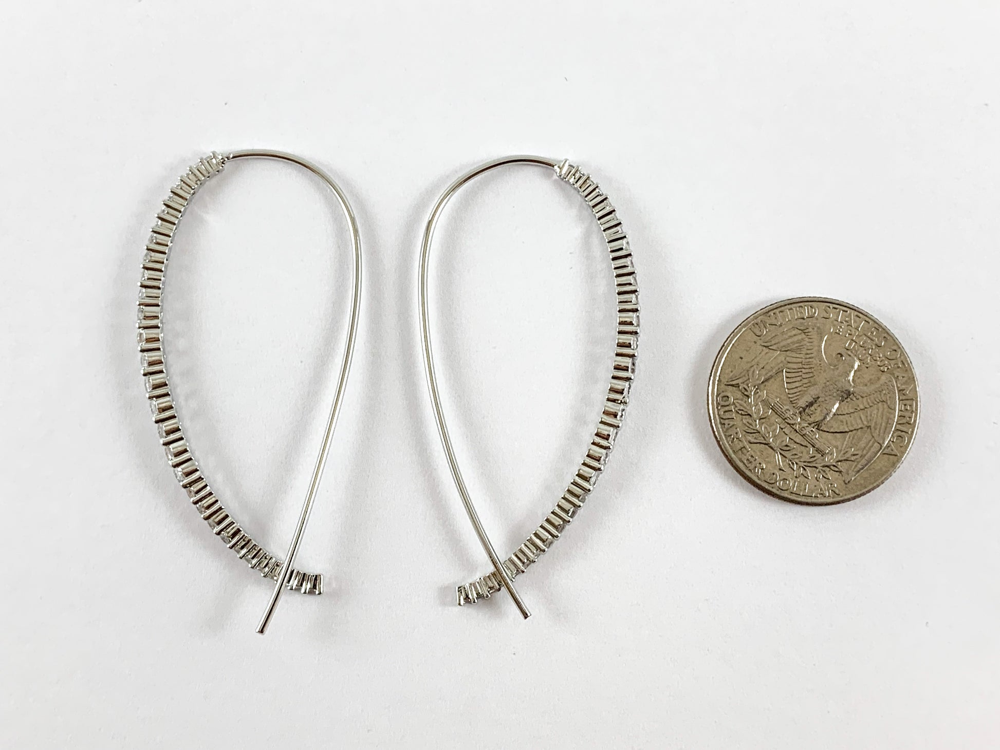 Real 18K Gold/Platinum Plated CZ Pave Threader Earring Over Copper 4 pairs