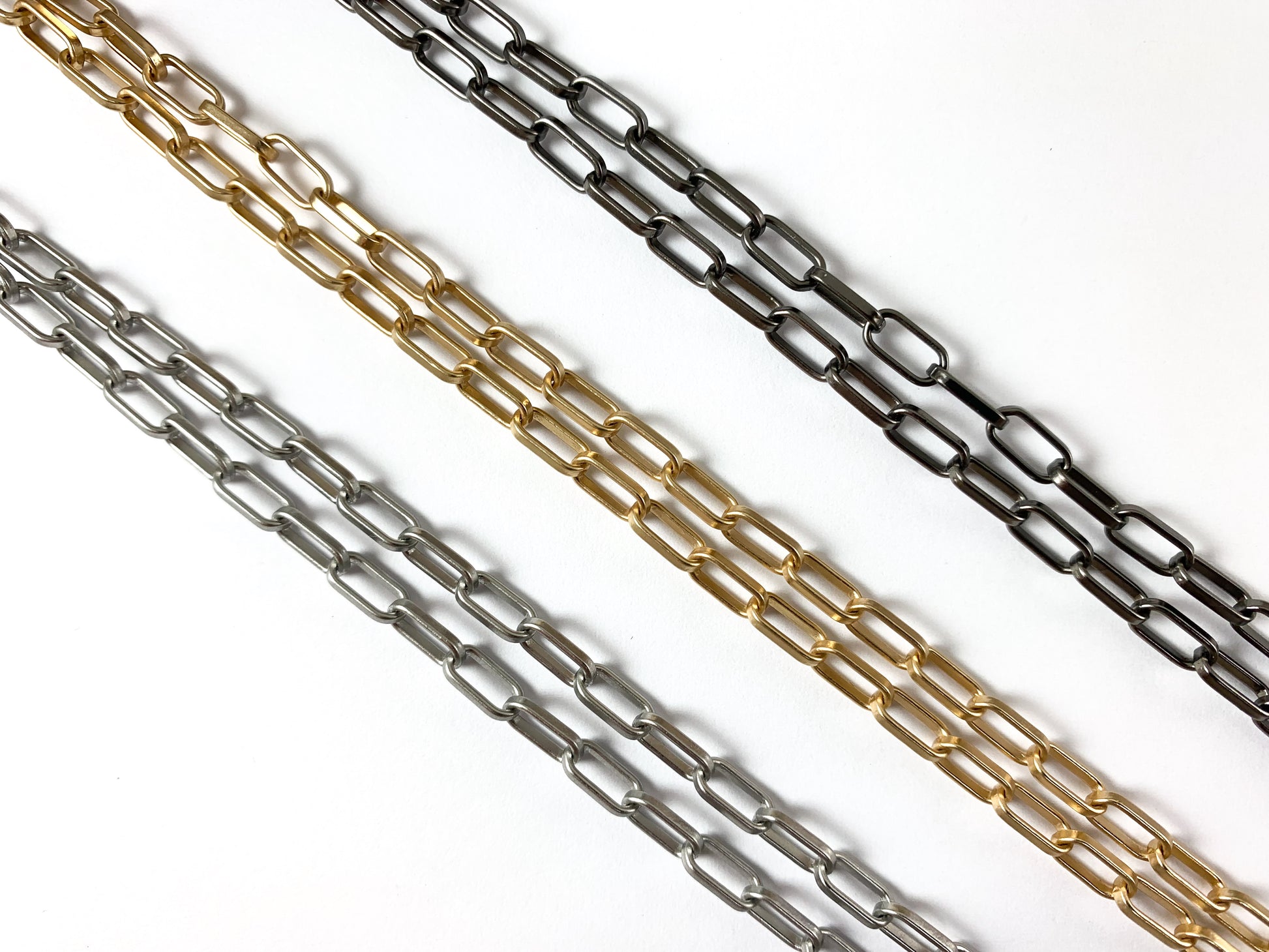 Real 18K Gold/Silver/Gunmetal Plated Paperclip Chain in Matte Gold, Matte Silver and Matte Gunmetal Color