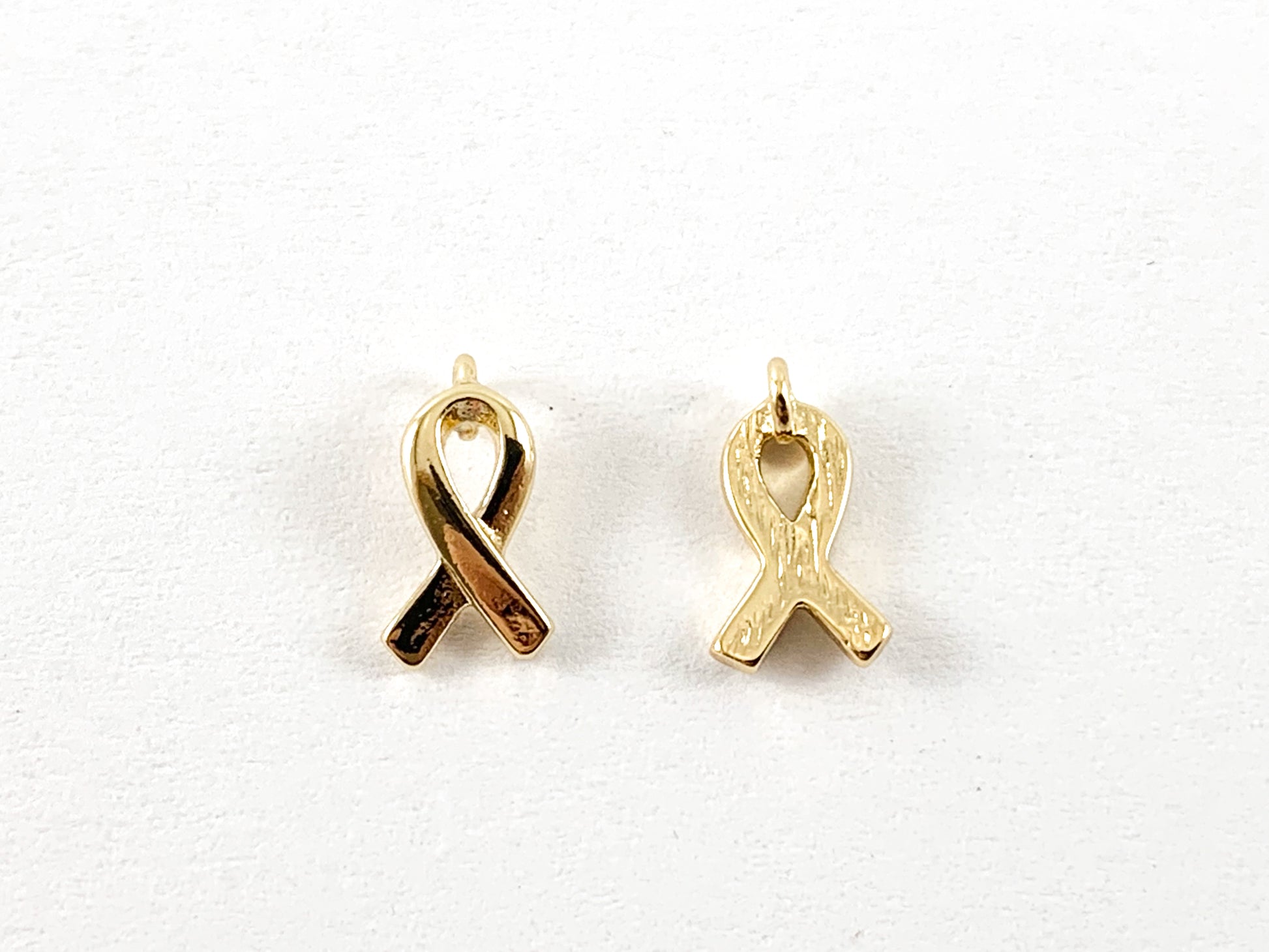 Real Gold 18K Plated Breast Cancer Awareness Ribbon Charms Over Brass 20pcs