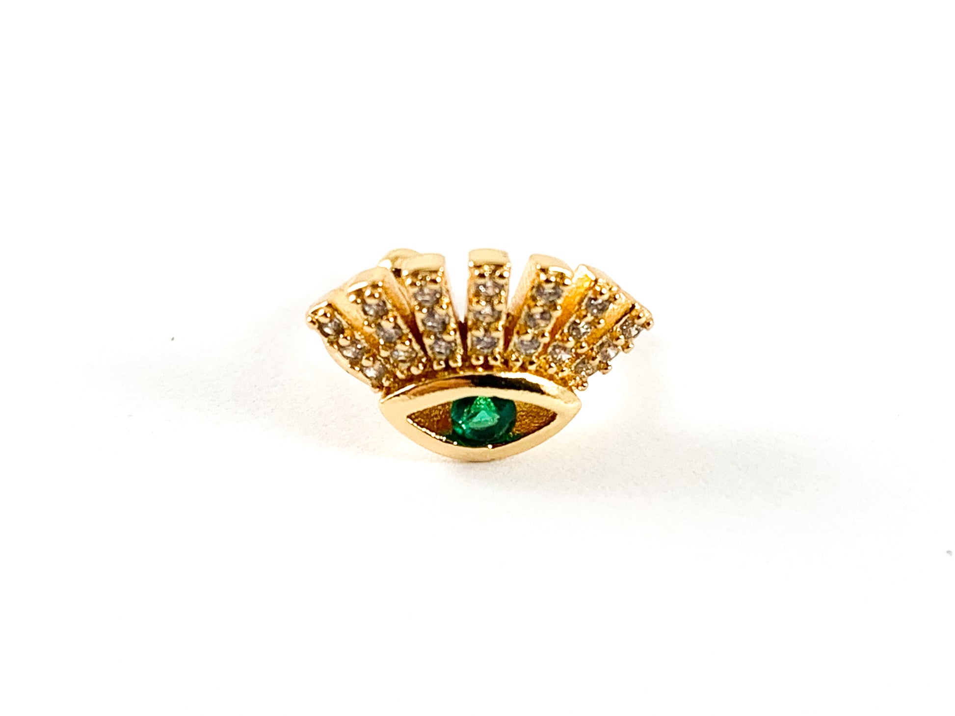 Real Gold 18K Plated Copper CZ Pave Green Evil Eye Ear Cuffs (No Piercing!!) 4 pcs