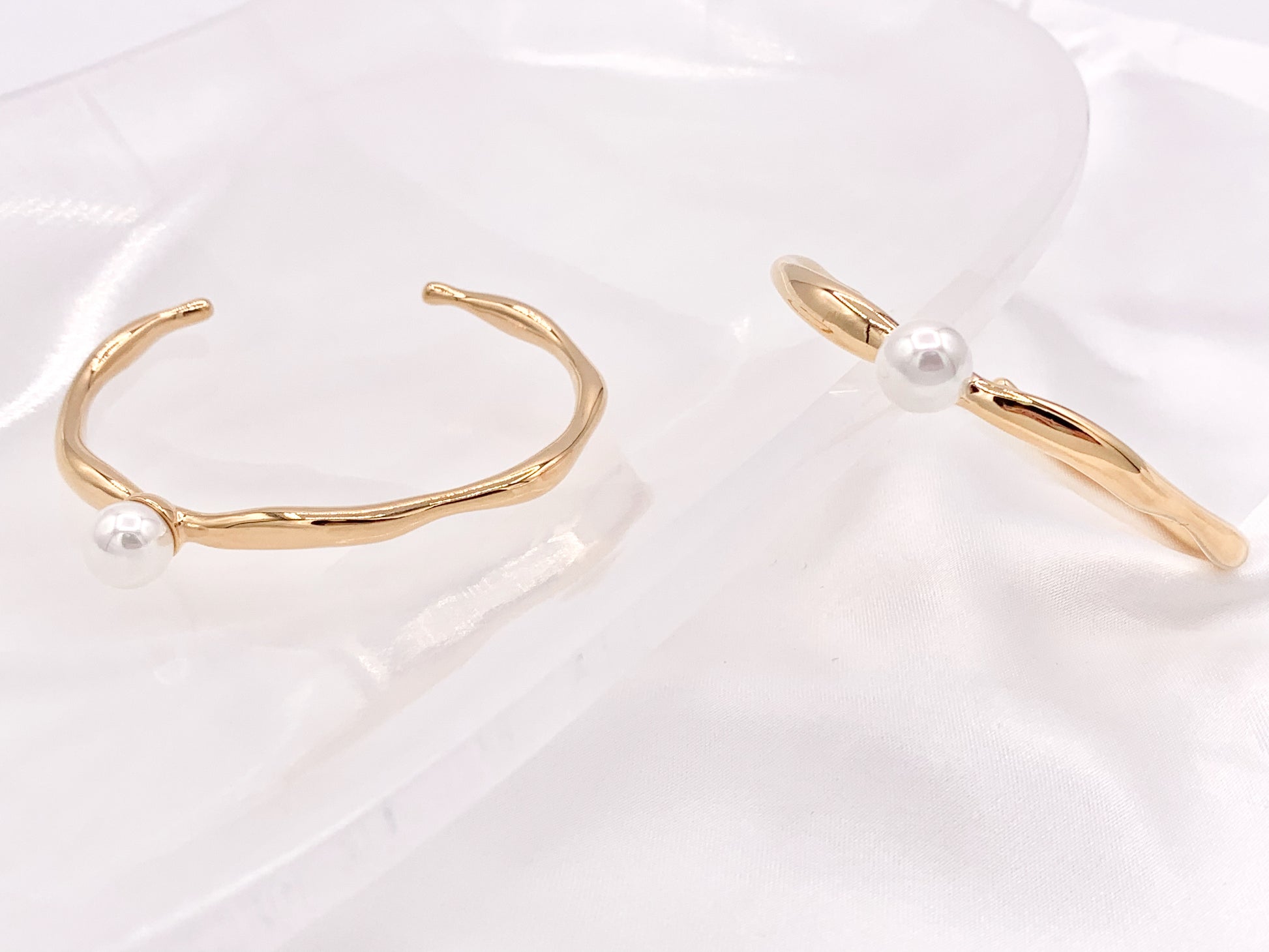 Real Gold 18K Plated Copper Simple Minimalist Pearl Adjustable Bracelet Cuff 3 pcs