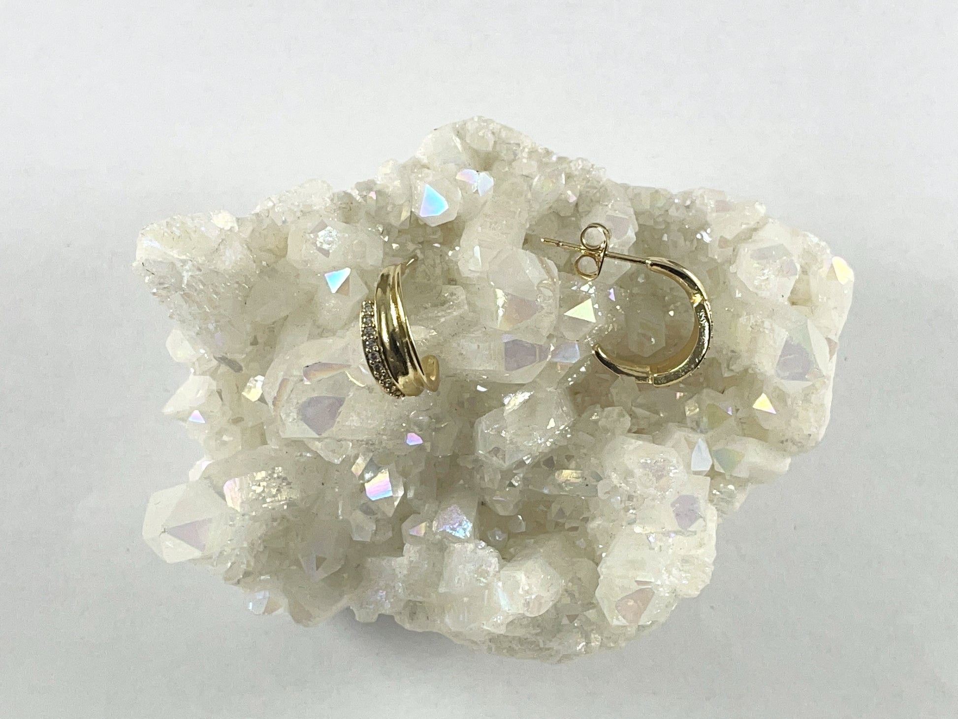 Real Gold 18K Plated Dainty CZ Pave Crescent Hoops 4 pairs