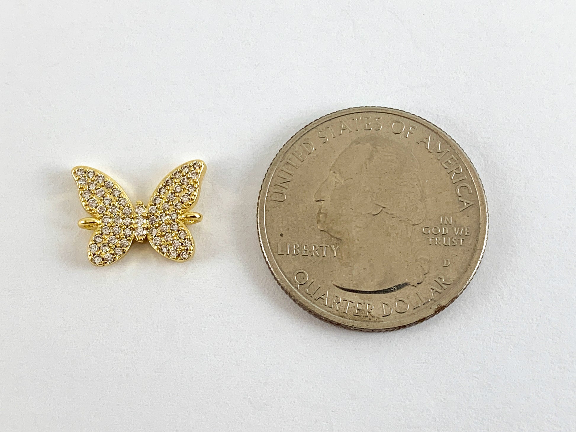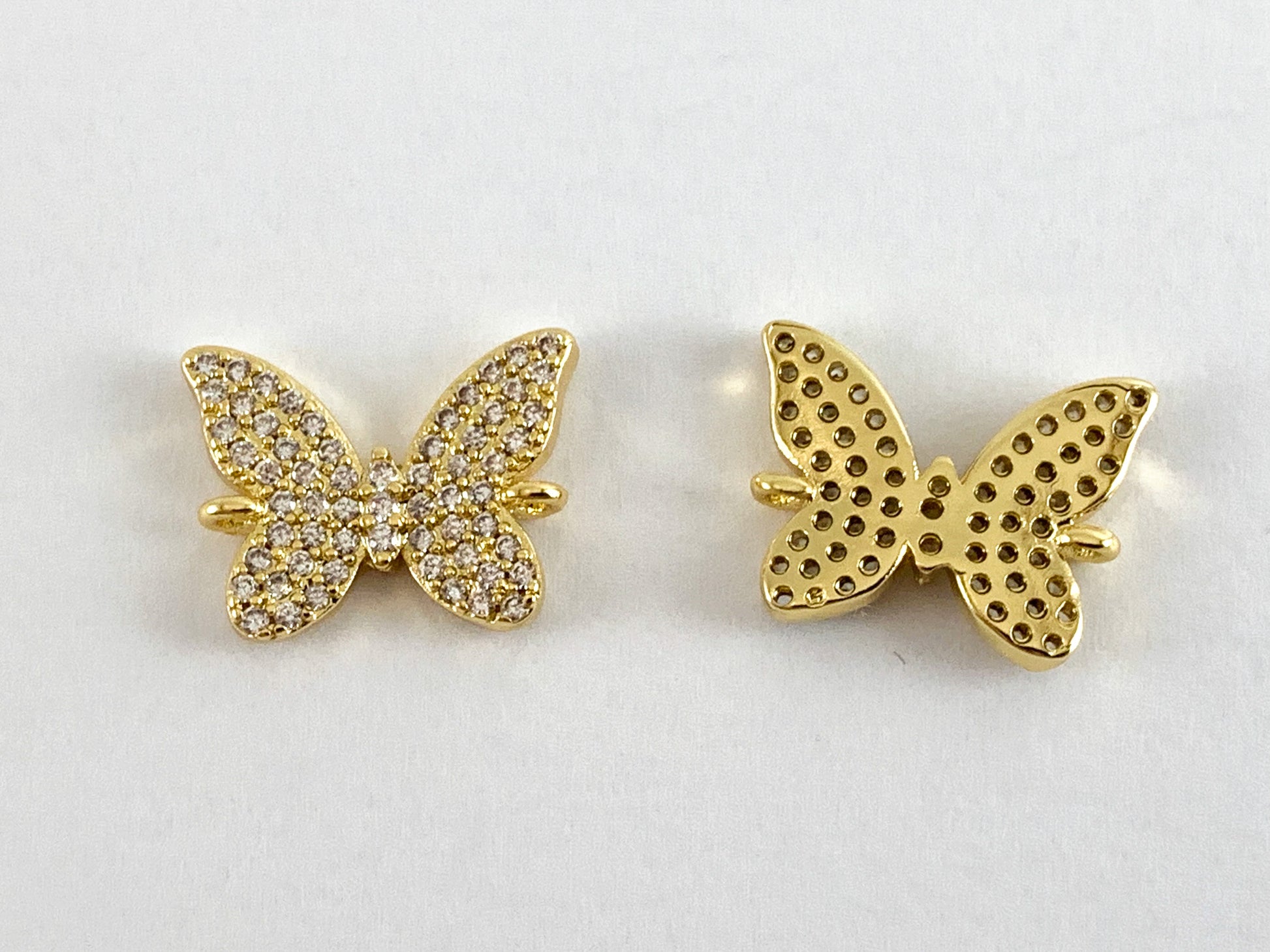 Real Gold 18K Plated Micro CZ Butterfly Pave Connectors Over Brass 5PCS