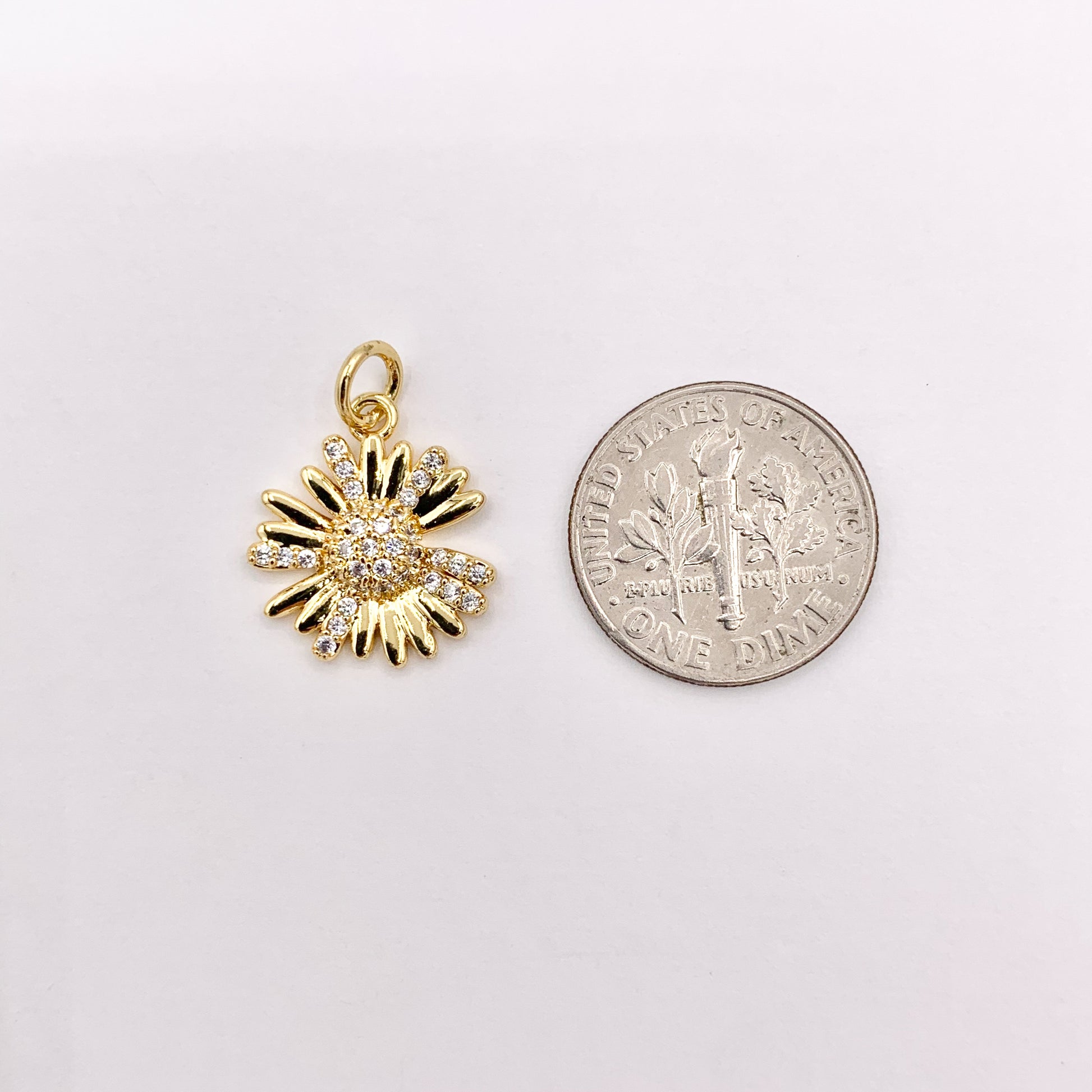 Real Gold 18K Plated Micro CZ Clear Daisy Flower Pave Charm Over Brass 10 PCS
