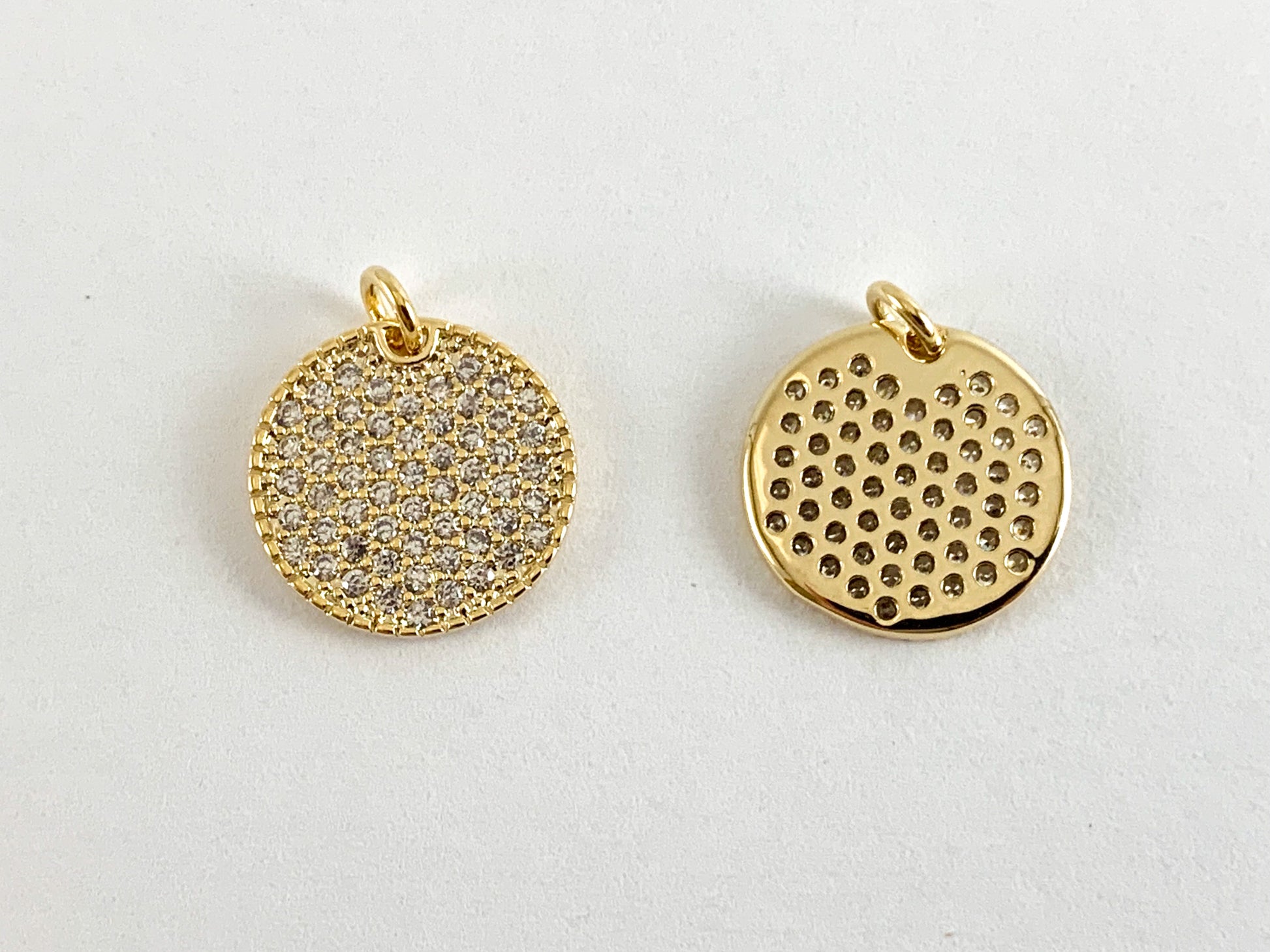 Real Gold 18K Plated Micro CZ Coin Pave Charm Over Brass 5PCS