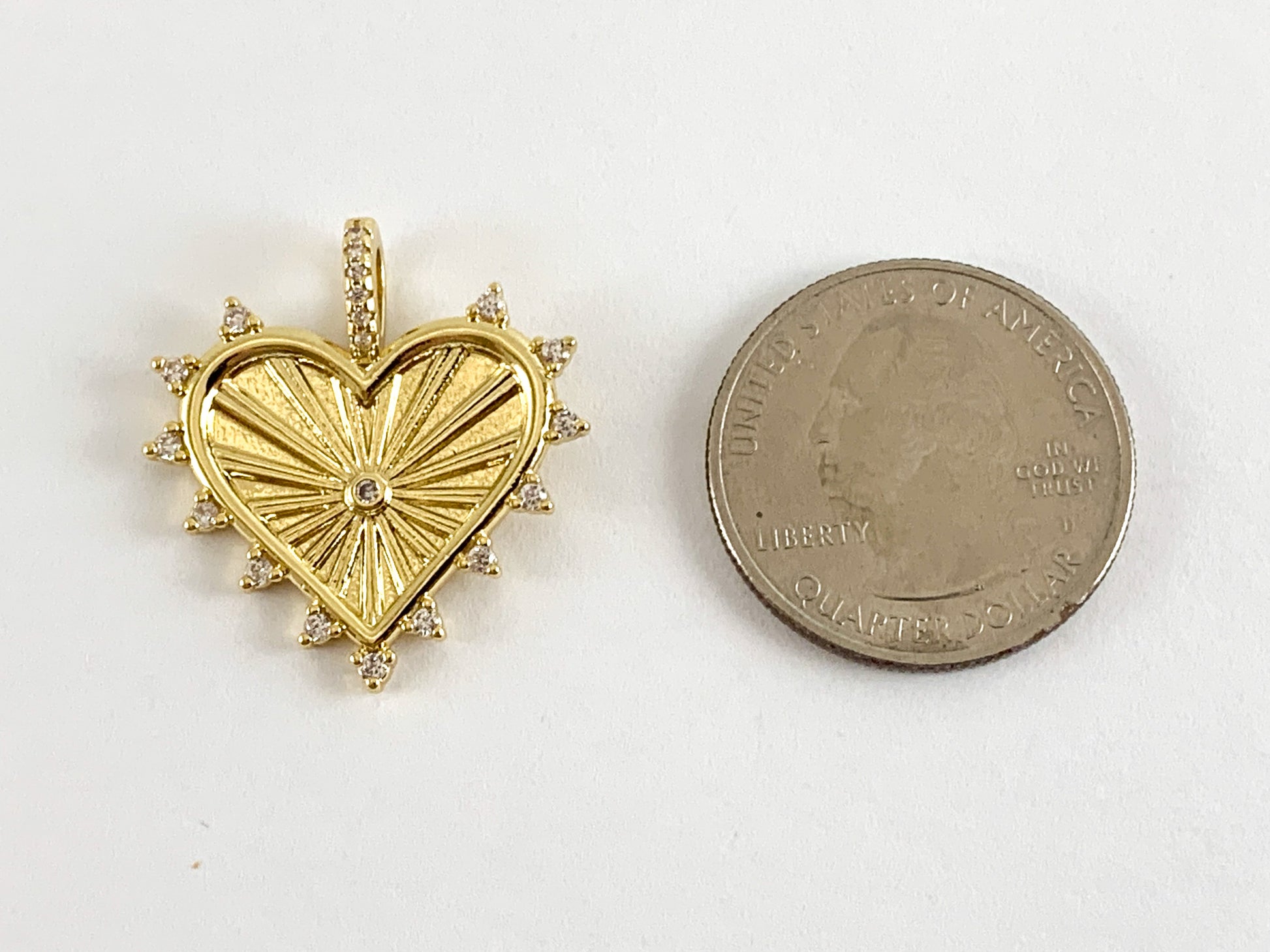 Real Gold 18K Plated Micro CZ Heart Pave Charm Over Brass 6PCS