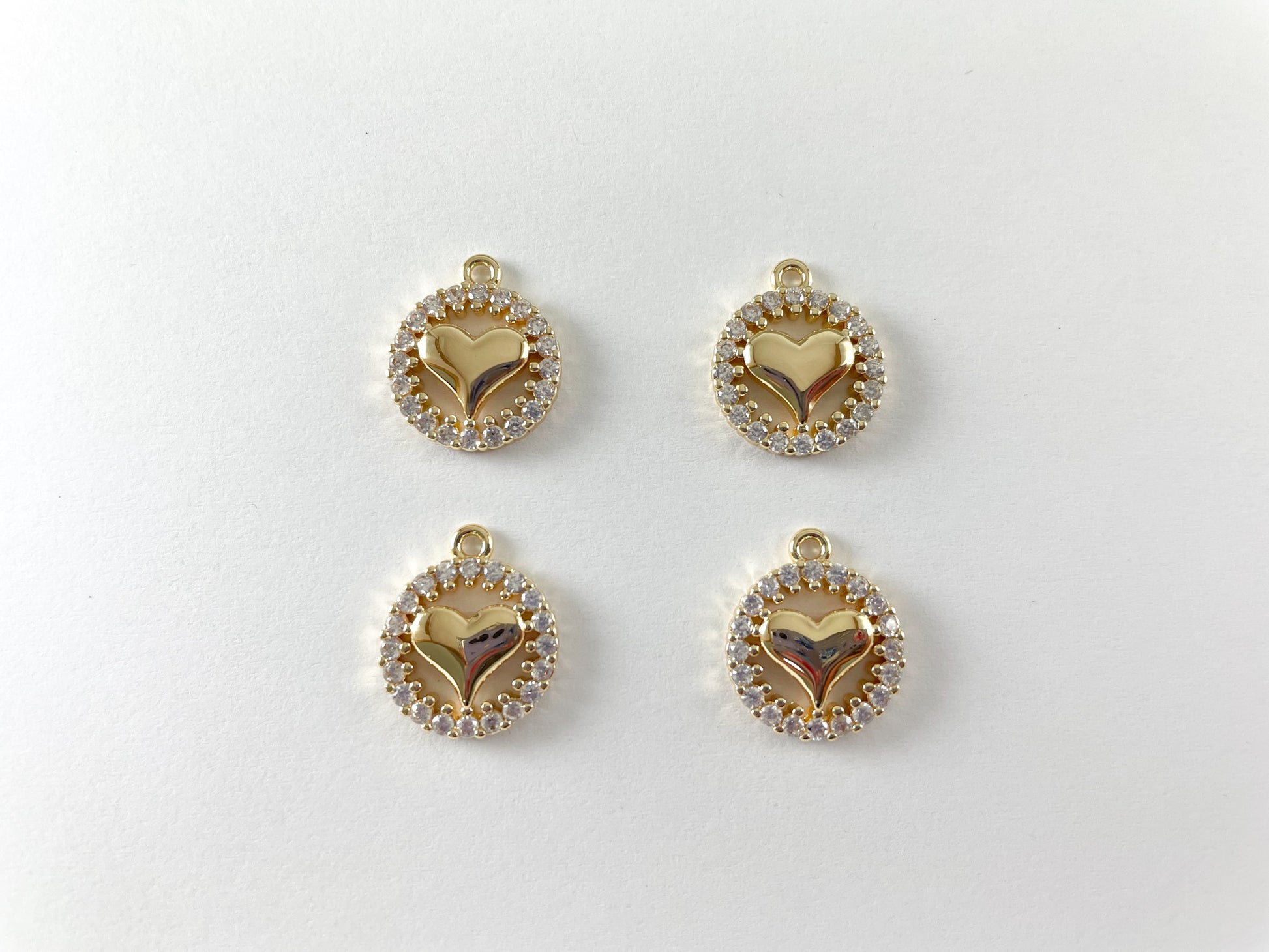 These cute little heart charms are real gold 18K plated with a brass base. These charms can be wonderful made into bracelets, dainty necklaces, earring drops and even used for crafts.