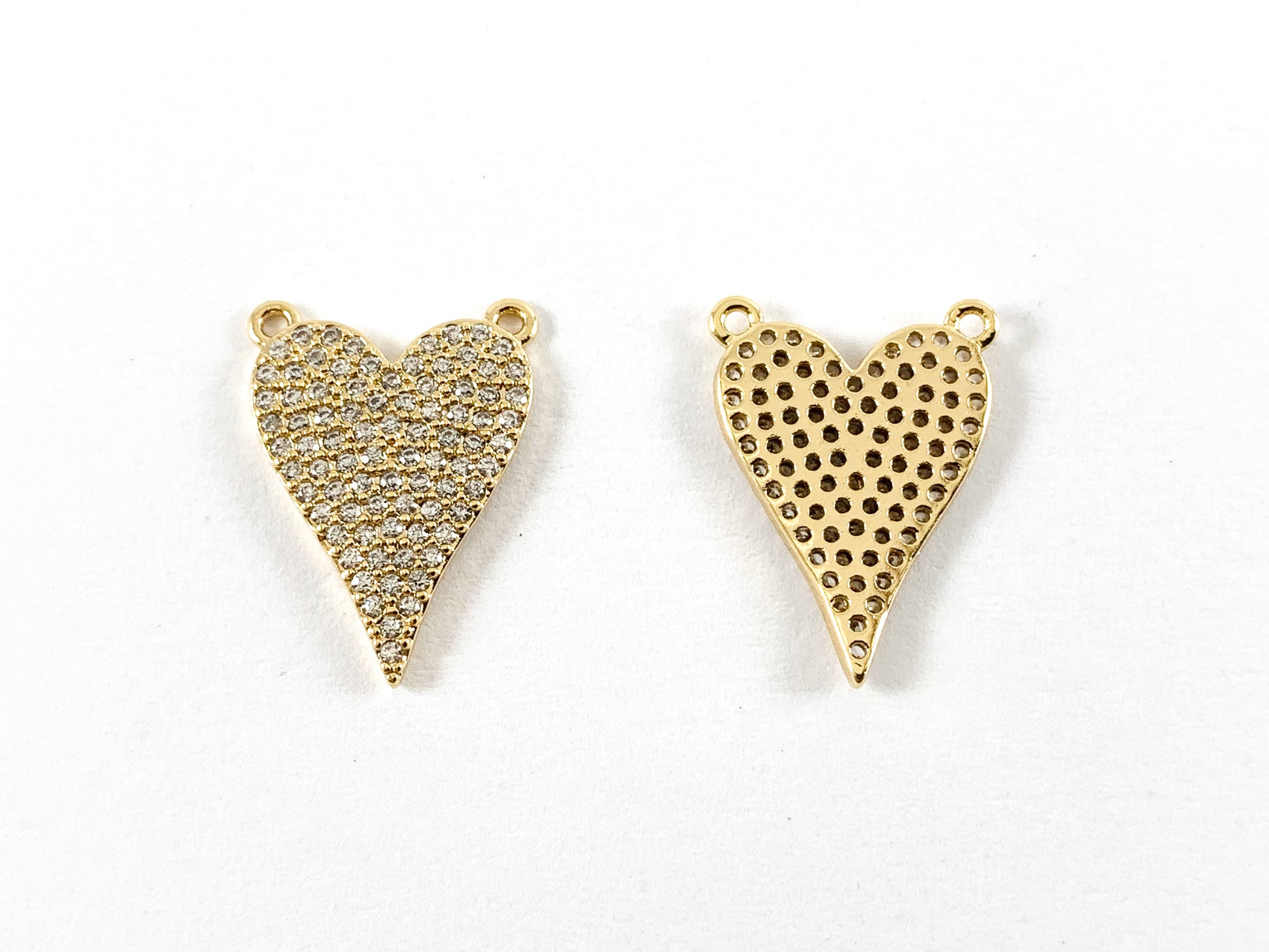 Real Gold 18K Plated Micro CZ Heart Pave Charm Over Copper 5PCS