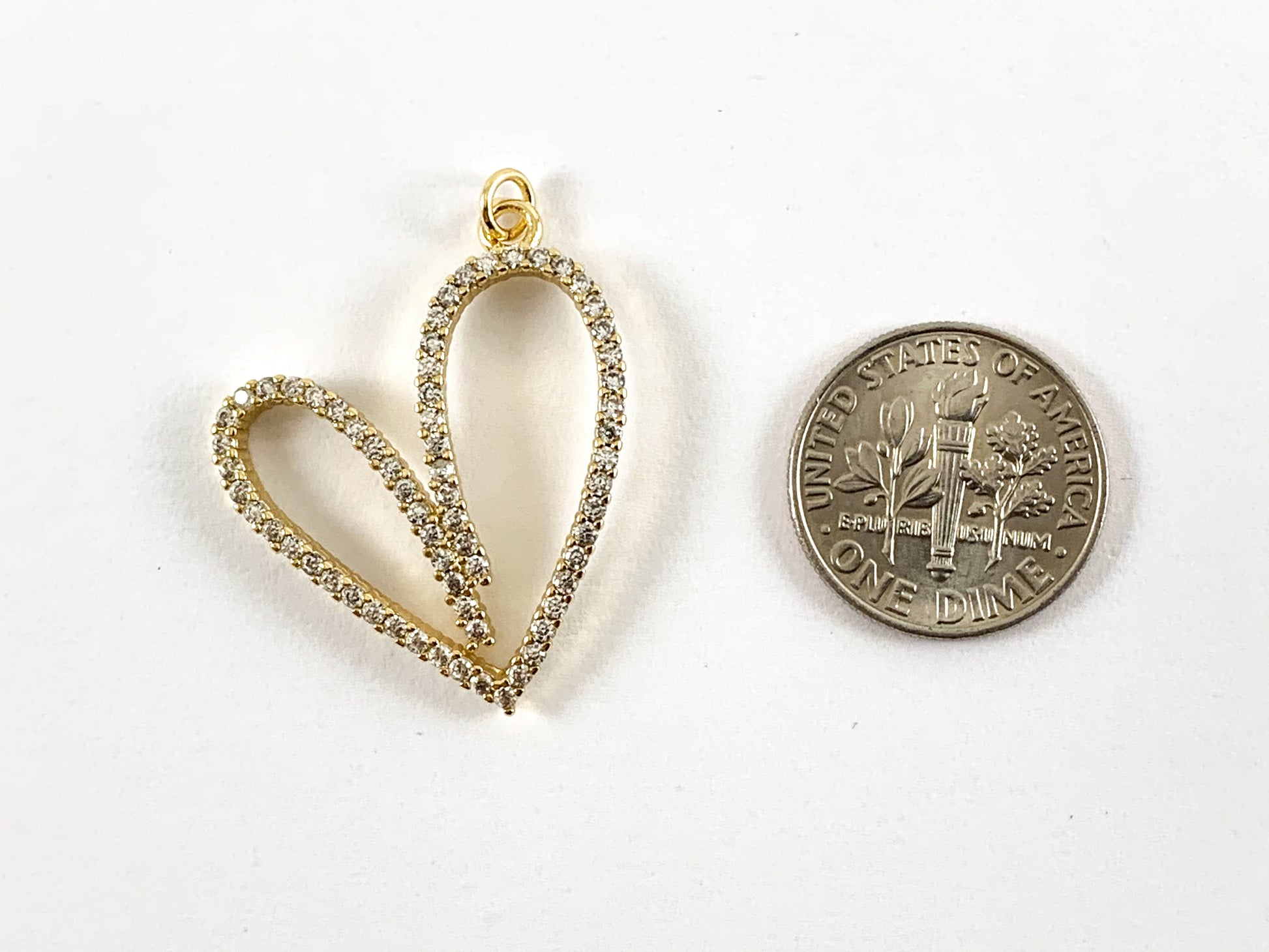 Real Gold 18K Plated Micro CZ Heart Pave Charm Over Copper 5PCS