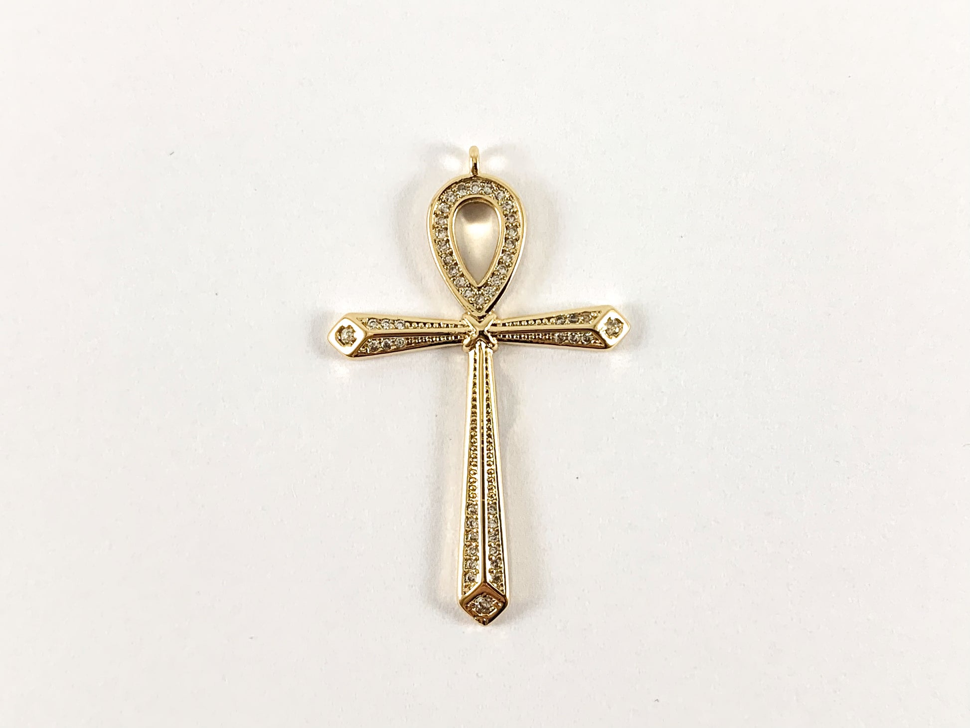 Real Gold 18K Plated Micro CZ Pave Ankh Cross Pendant Over Copper 6pcs