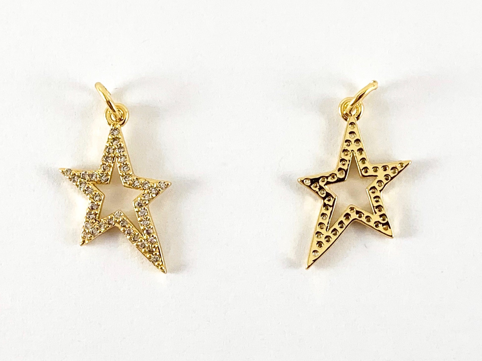 Real Gold 18K Plated Micro CZ Pave Irregular Star Charm Over Brass 10PCS