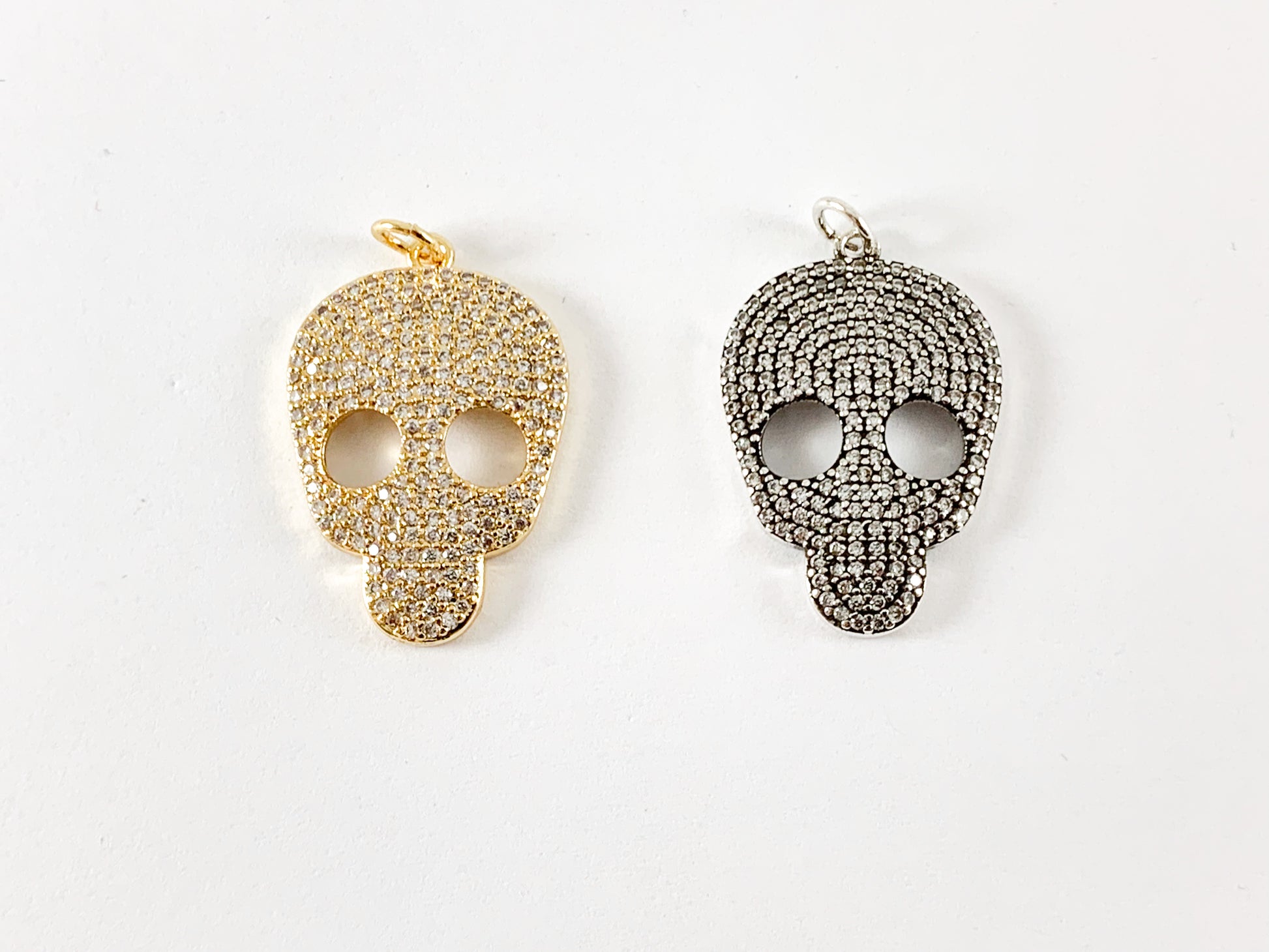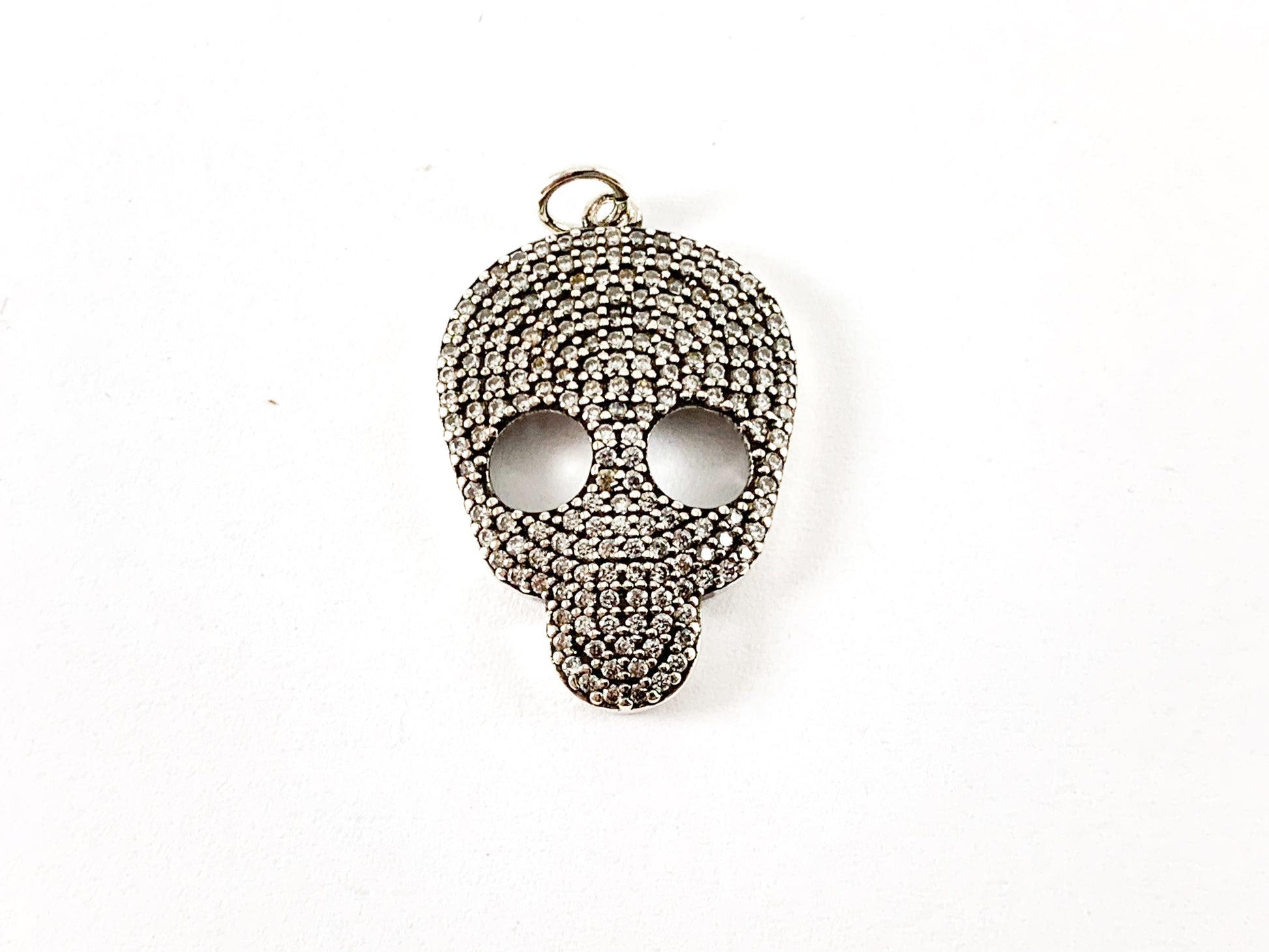 Real Gold 18K/Antique Silver Plated Micro CZ Pave Rhinestone Skull Pendant Charm Over Brass 3pcs