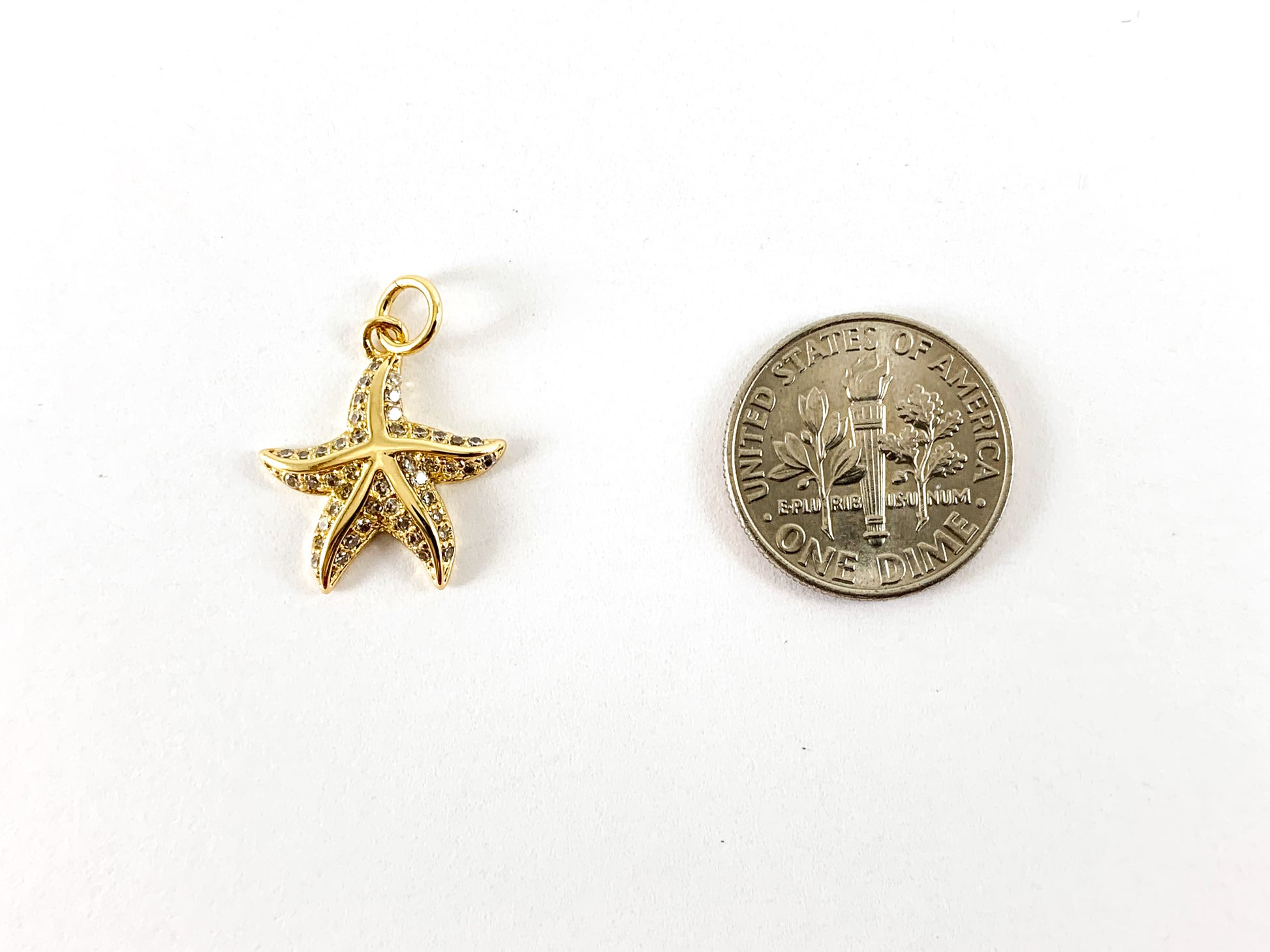 These cute starfish charms are real gold 18K plated with a brass base. These charms can be wonderful made into bracelets, dainty necklaces, earring drops and even used for crafts.