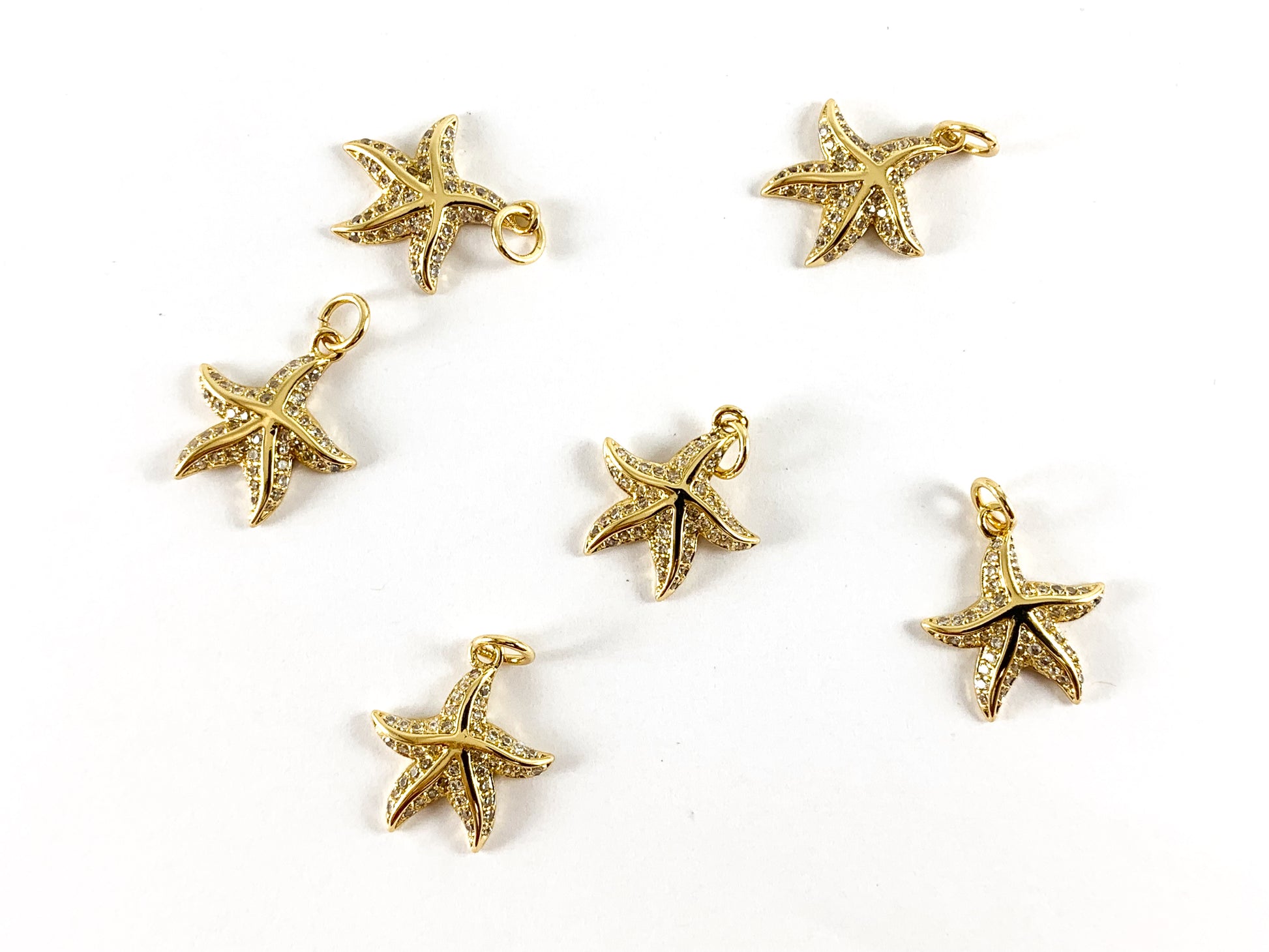 Real Gold 18K Plated Micro CZ Starfish Pave Charm Over Brass 6pcs
