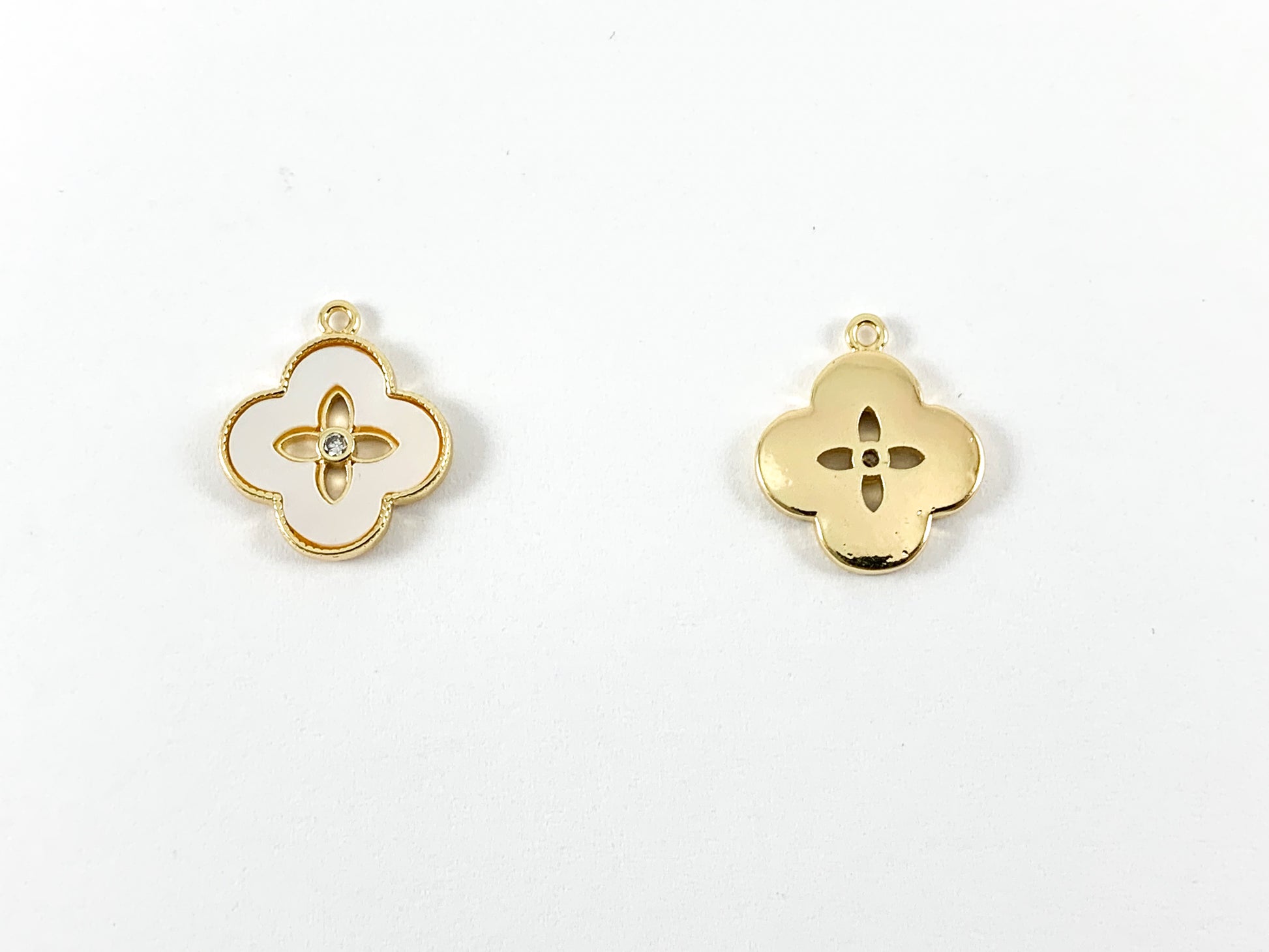 Real Gold 18K Plated Mother of Pearl Clover Quatrefoil Pendant Charm Over Brass 6PCS