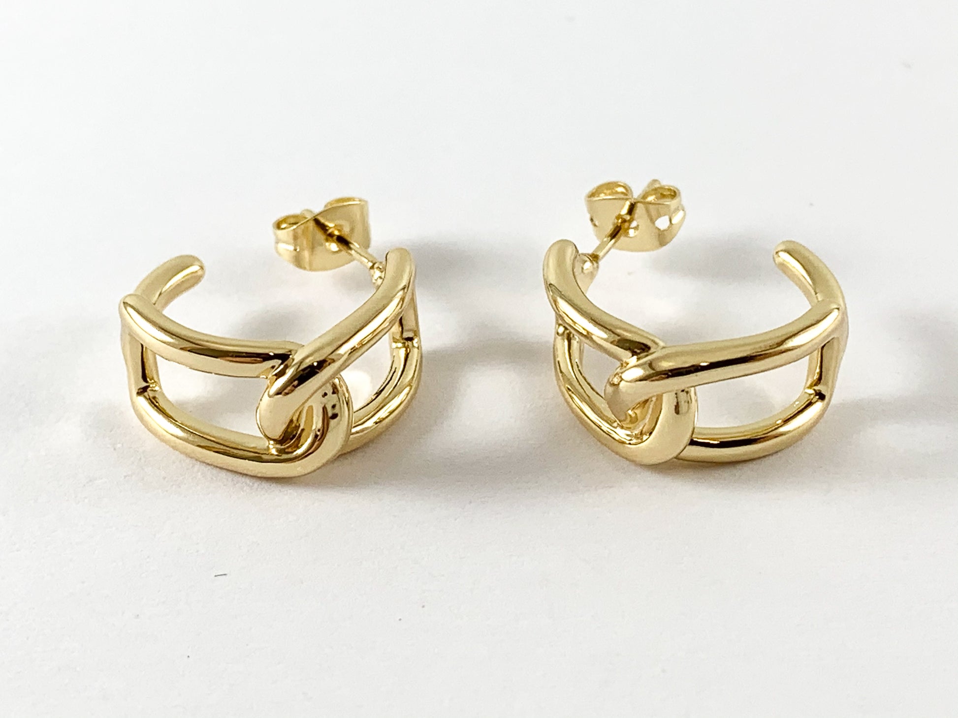 Real Gold 18K Plated Rectangle Link Earring Hoop Huggies 5pairs