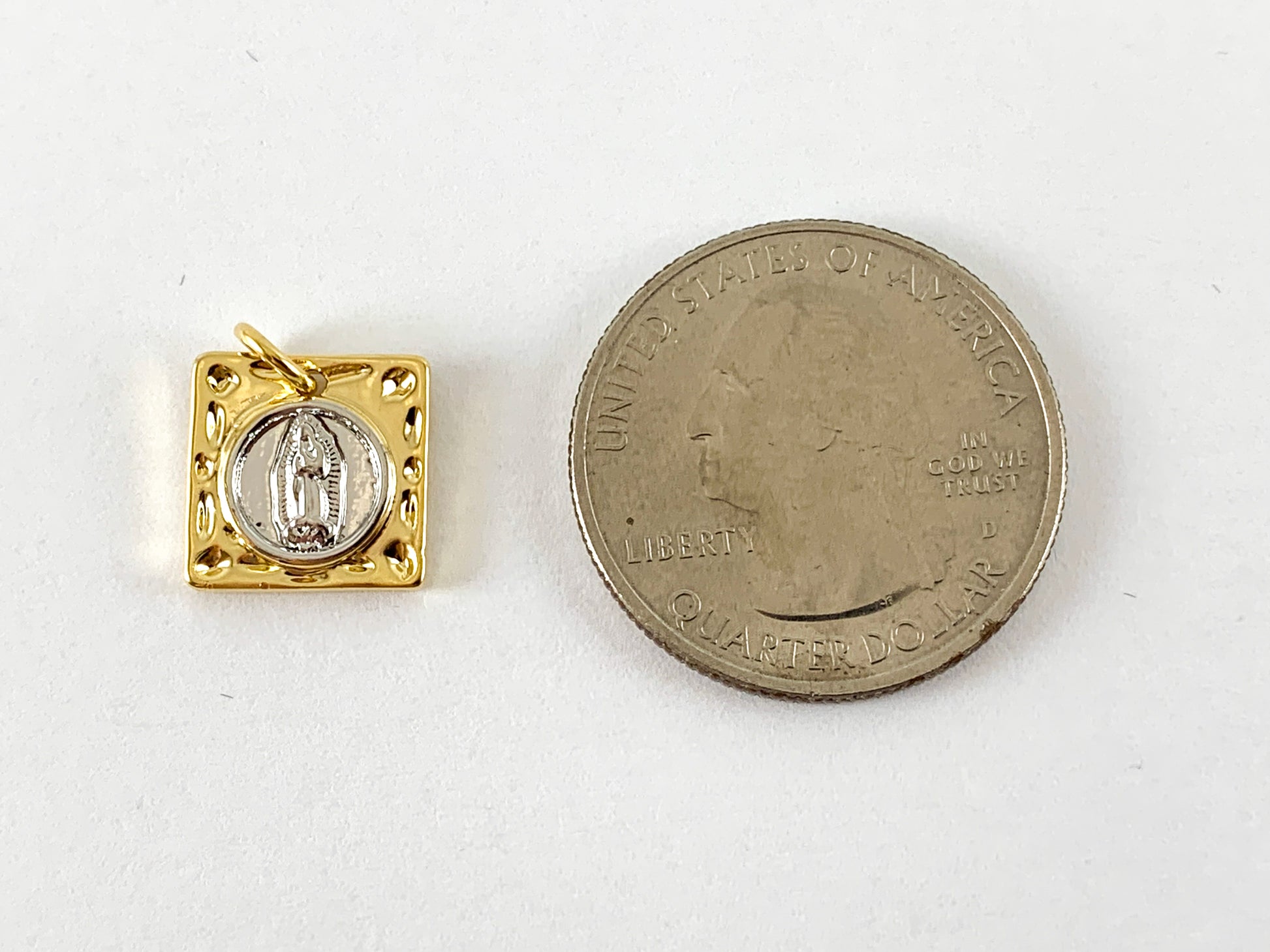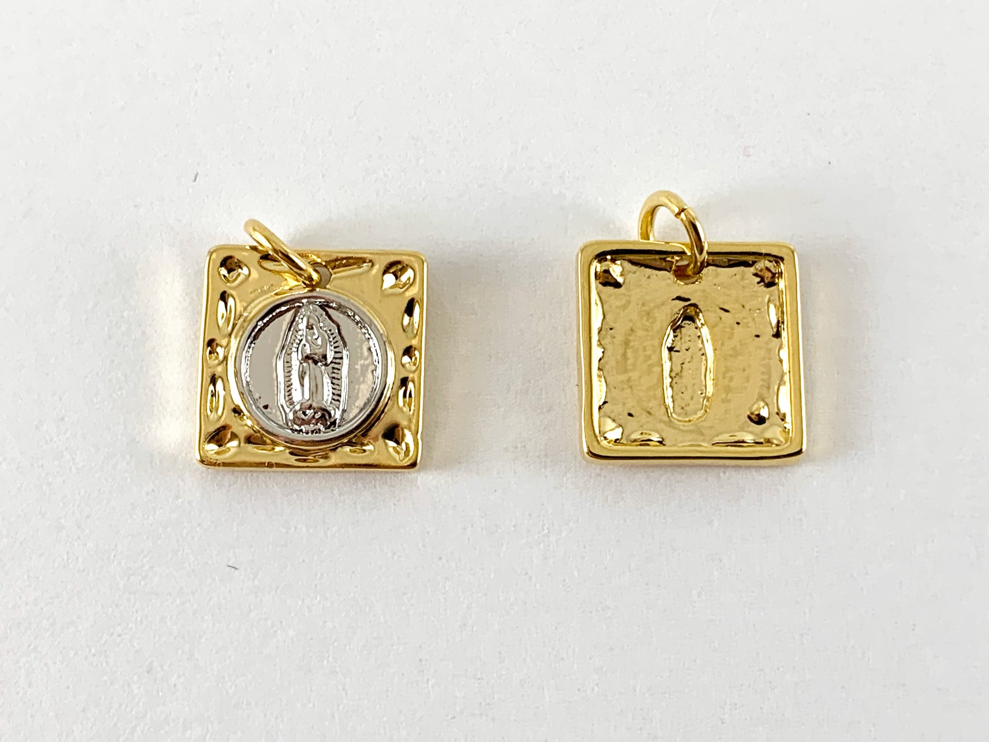 These cute little Virgin Mary charms are real gold 18K plated with a brass base. These charms can be wonderful made into bracelets, dainty necklaces, earring drops and even used for crafts.