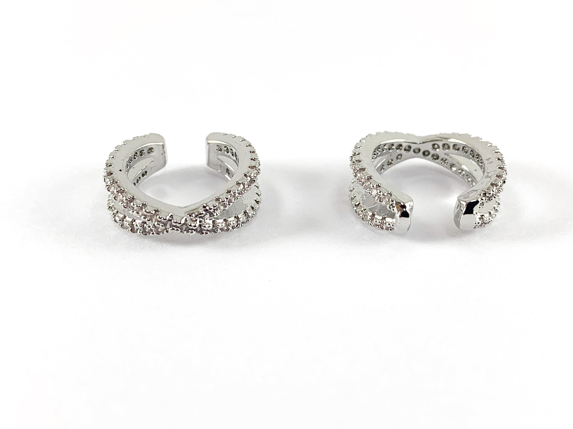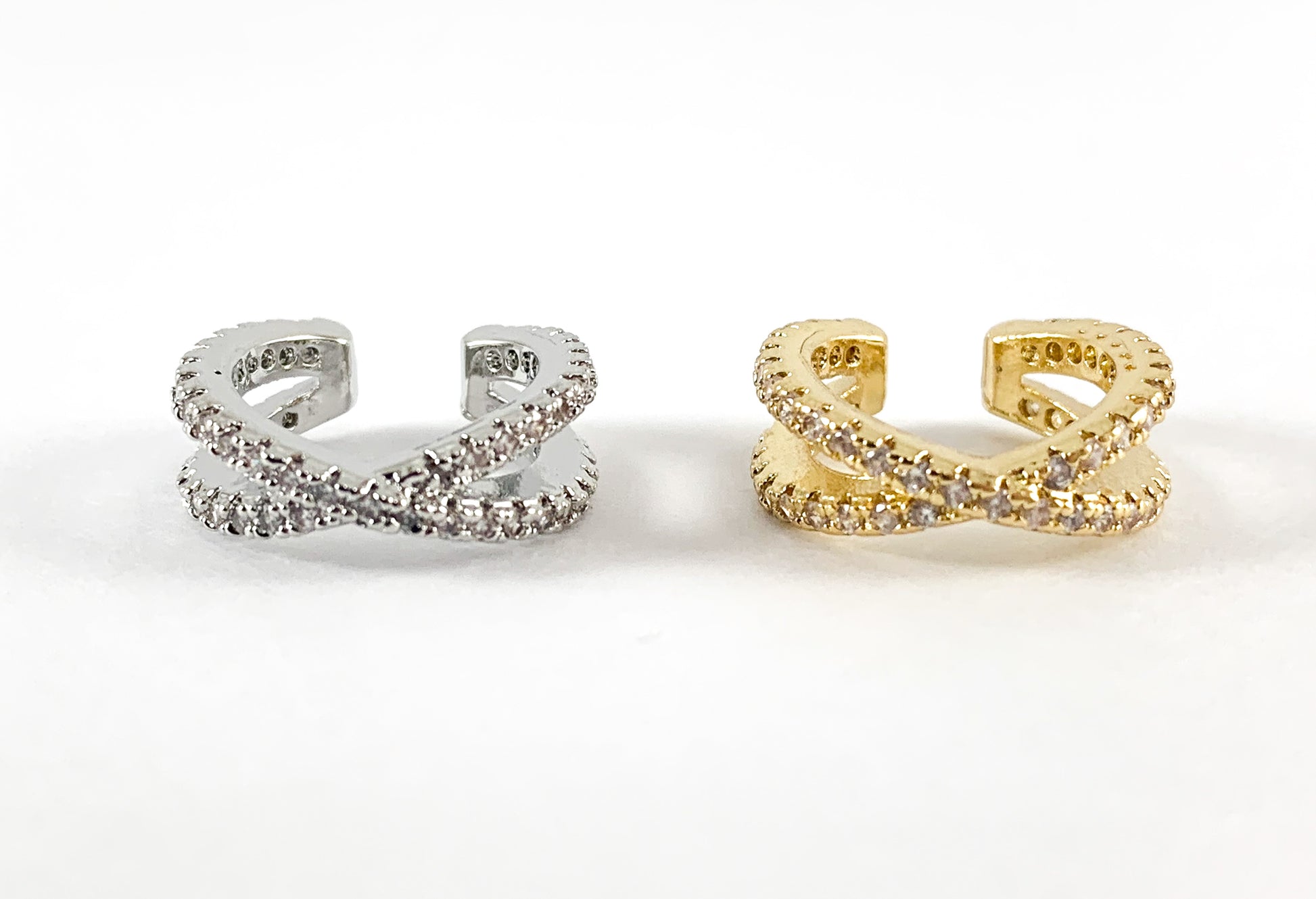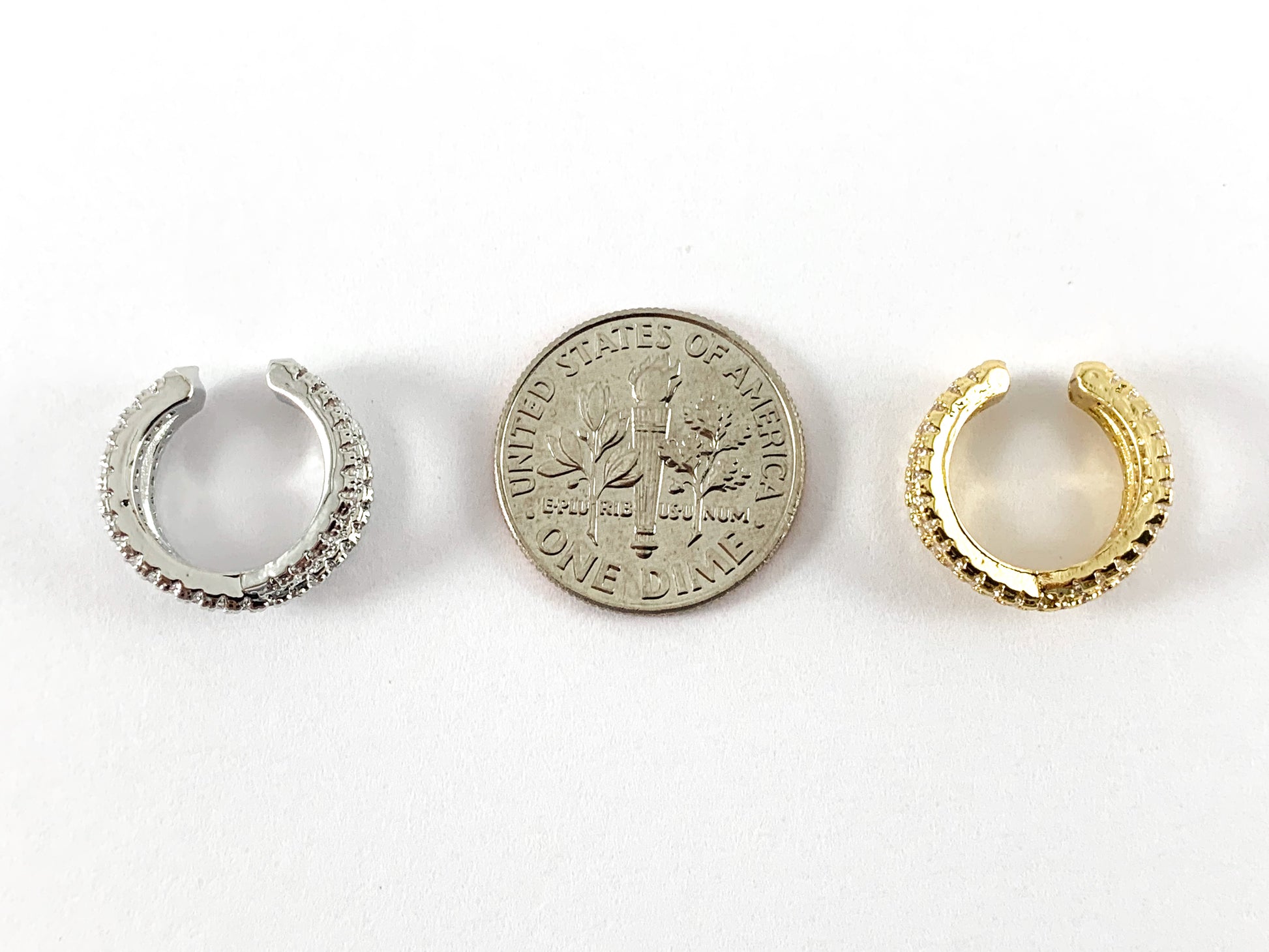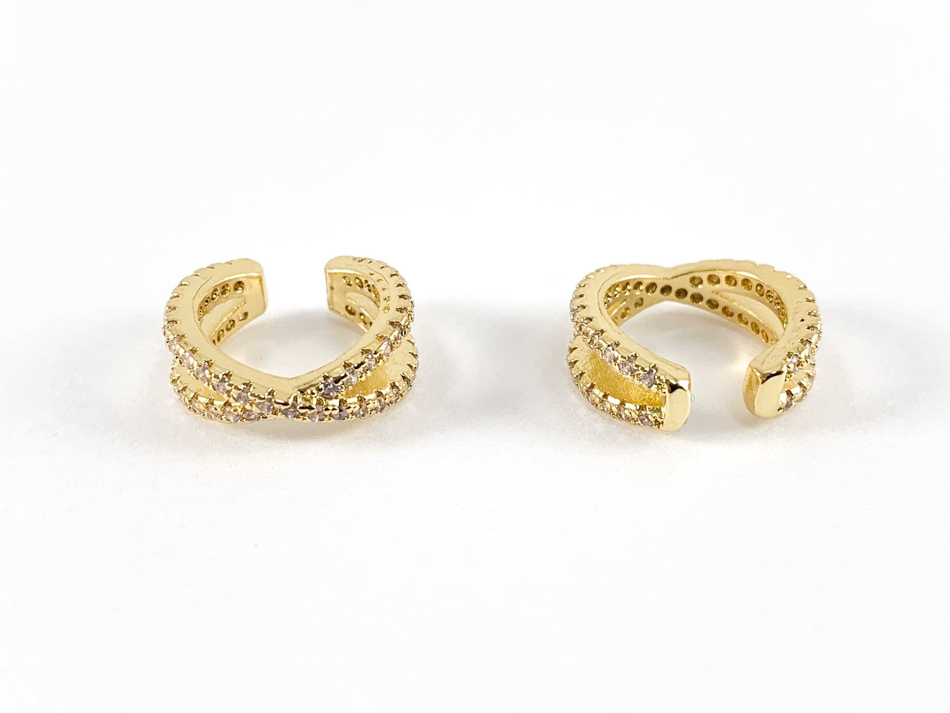 Real Gold 18K/Platinum Plated Copper CZ Pave Double Band Ear Cuffs (No Piercing!!) 4PCS