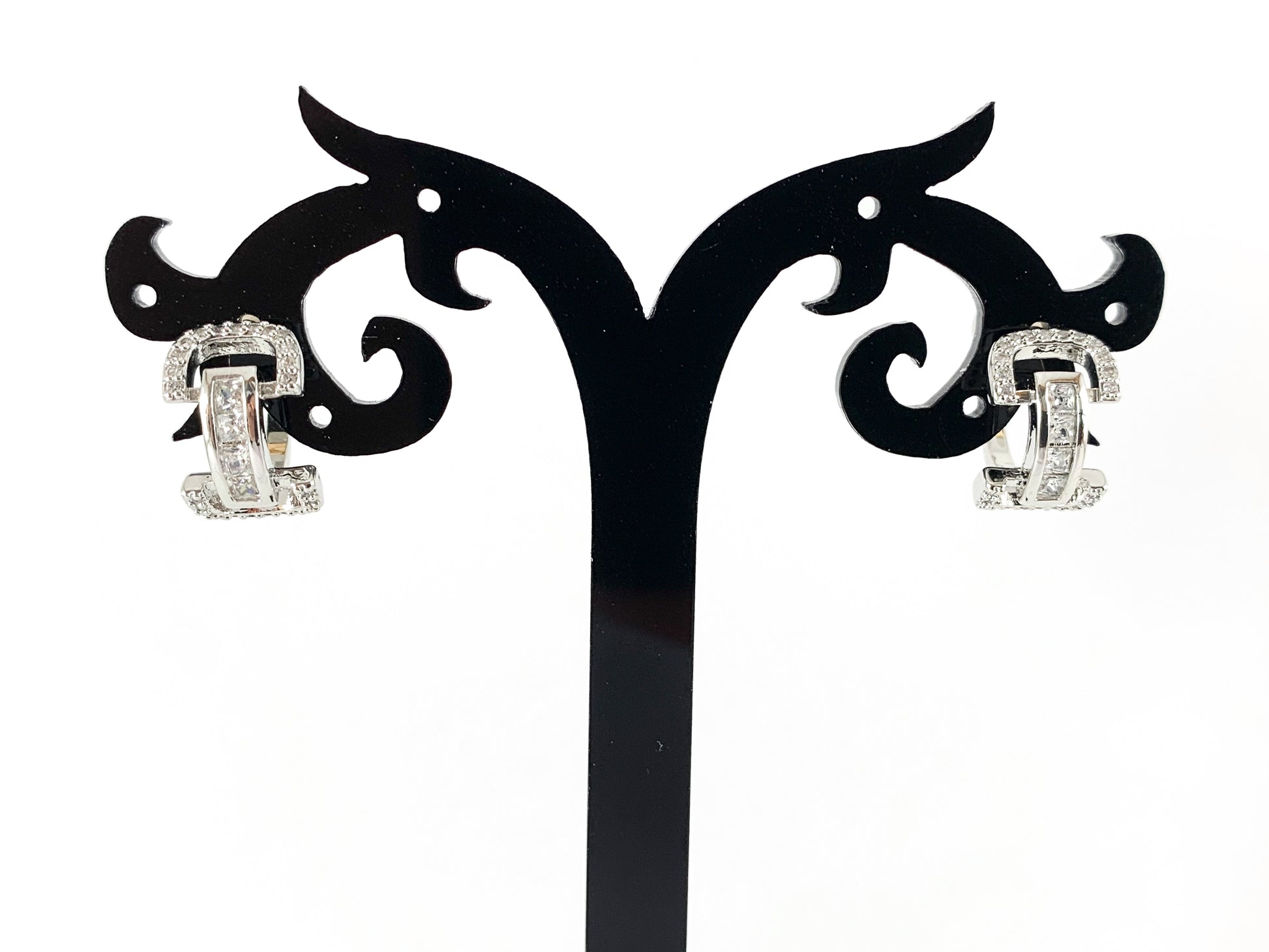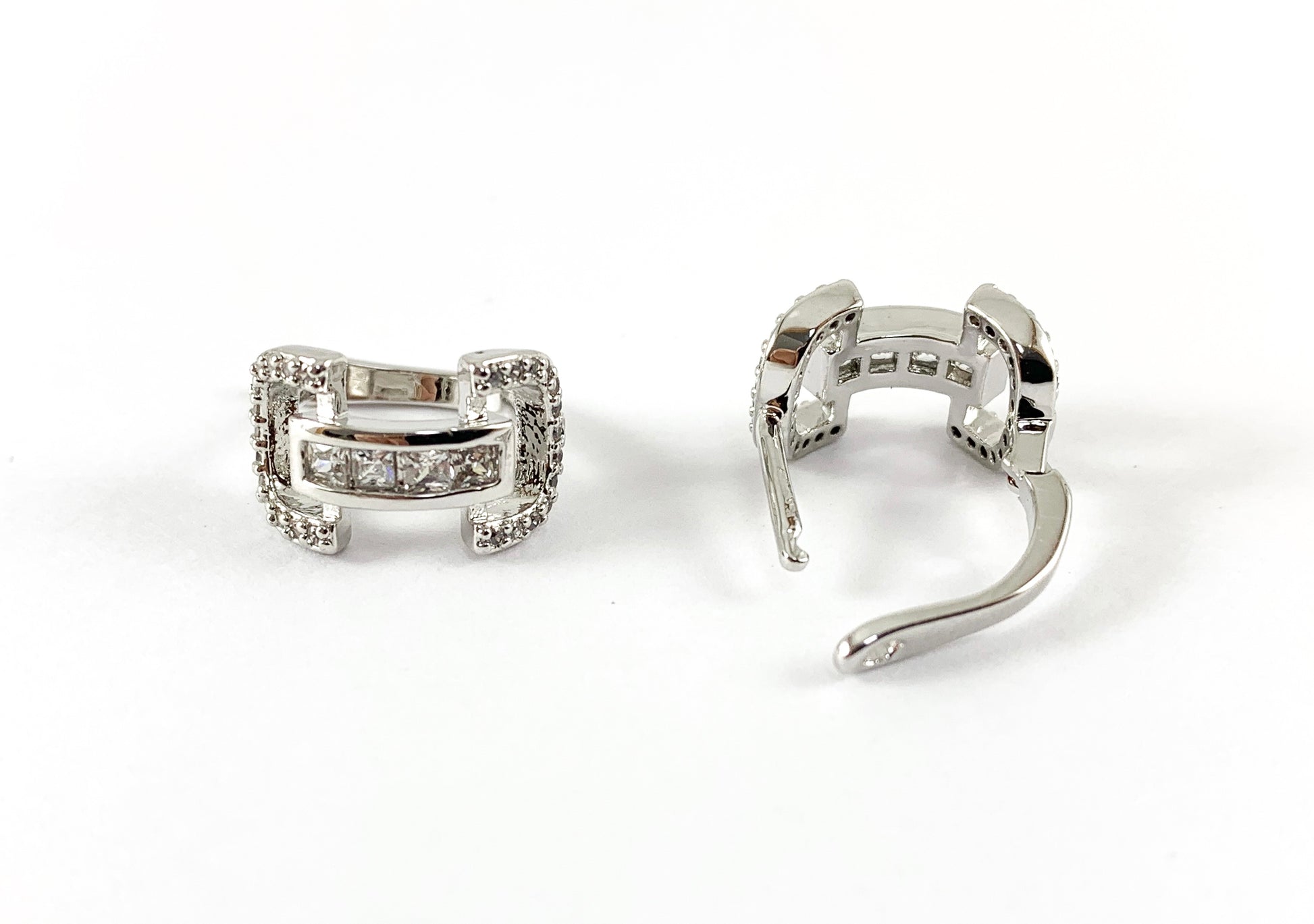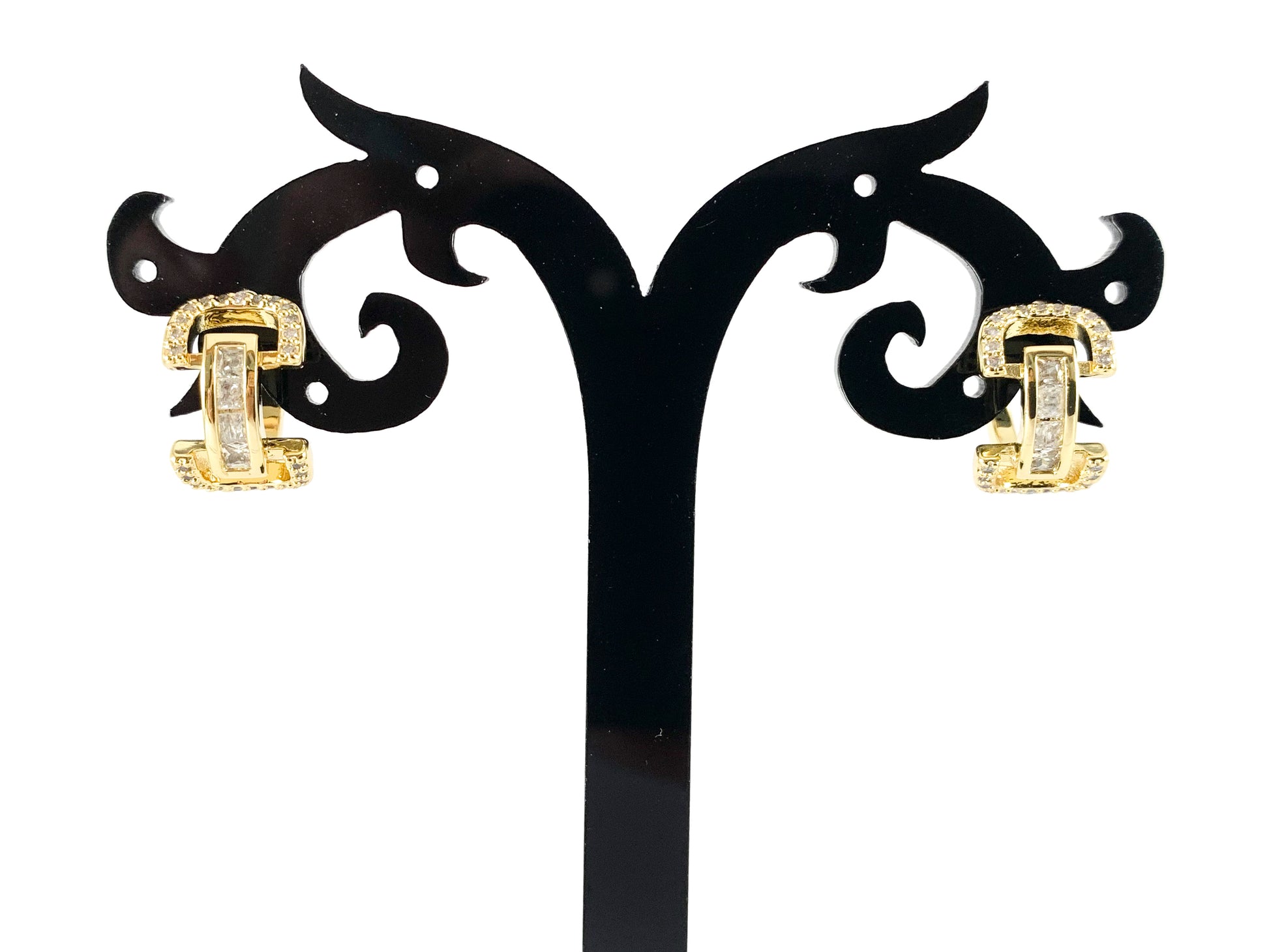 Real Gold 18K/Platinum Plated Micro CZ Pave U Shape Huggies Earrings Over Brass 3PAIRS