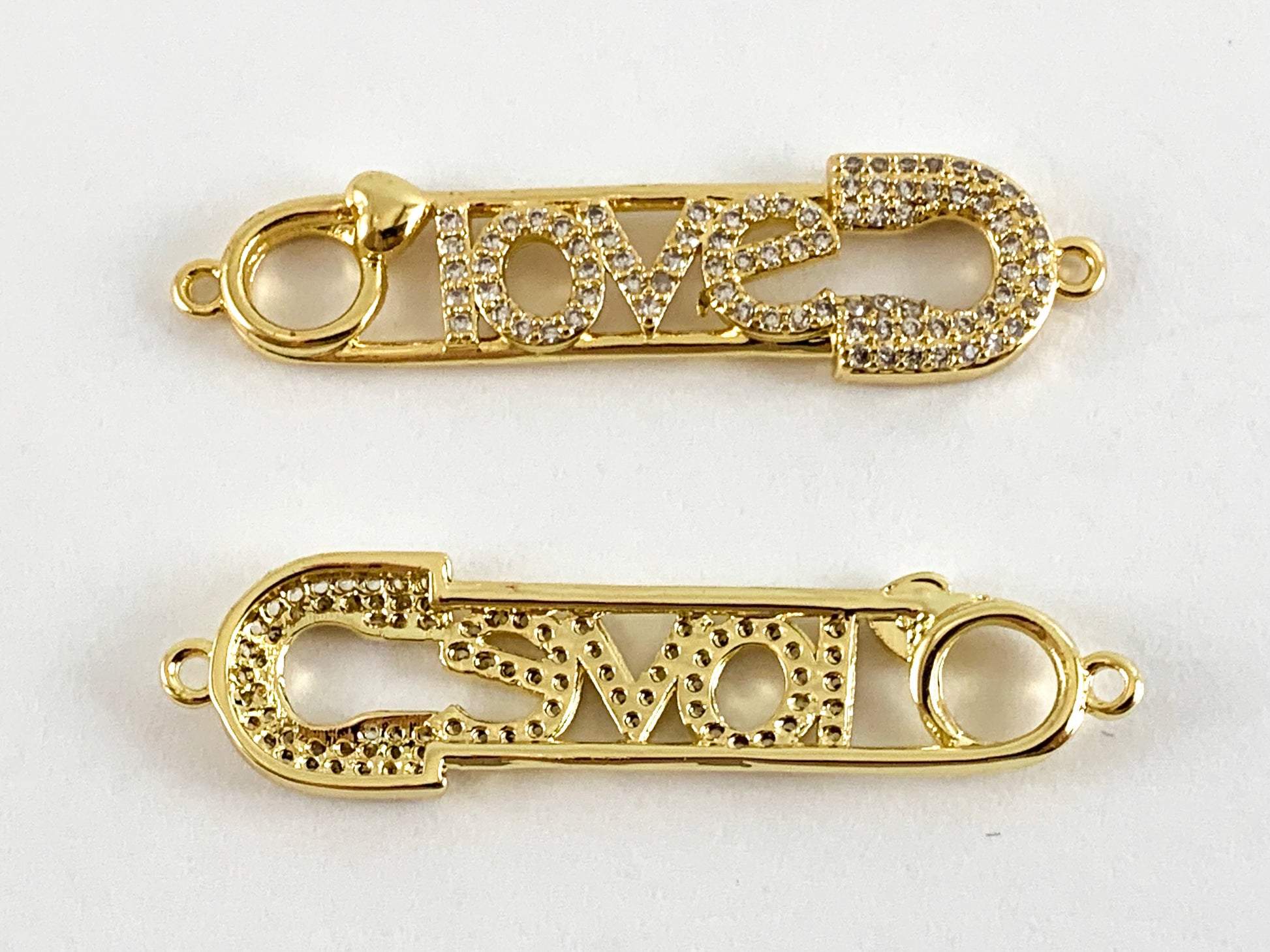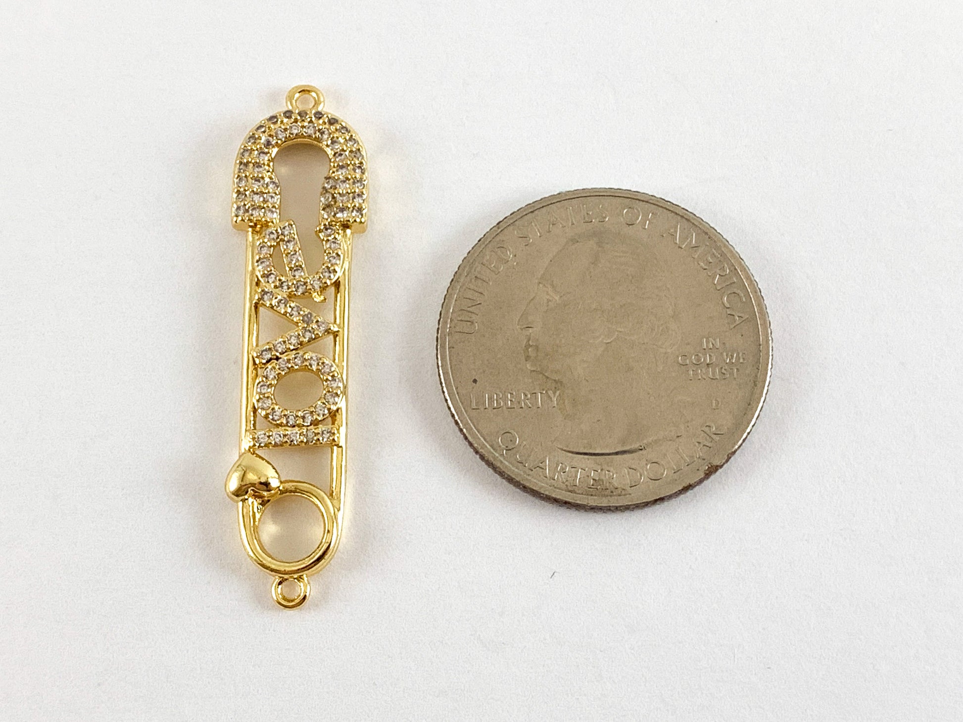 Real Gold Plated 18K Micro CZ Pave Safety Pin Connector Over Brass 5PCS
