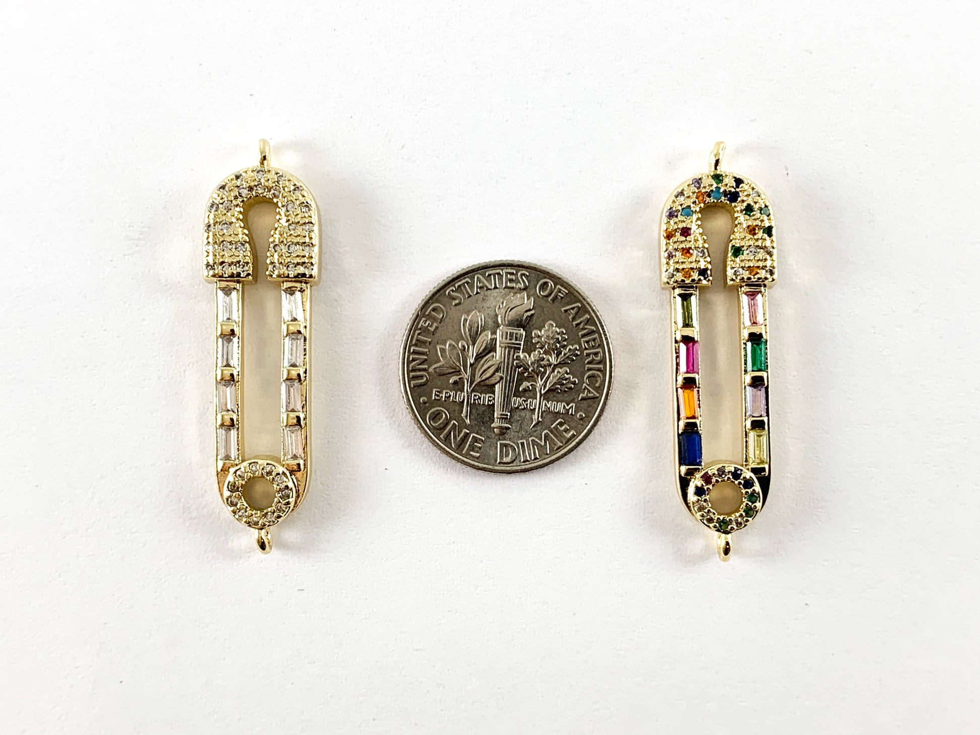 Real Gold Plated 18K Micro CZ Pave Safety Pin Connector Over Copper 4pc