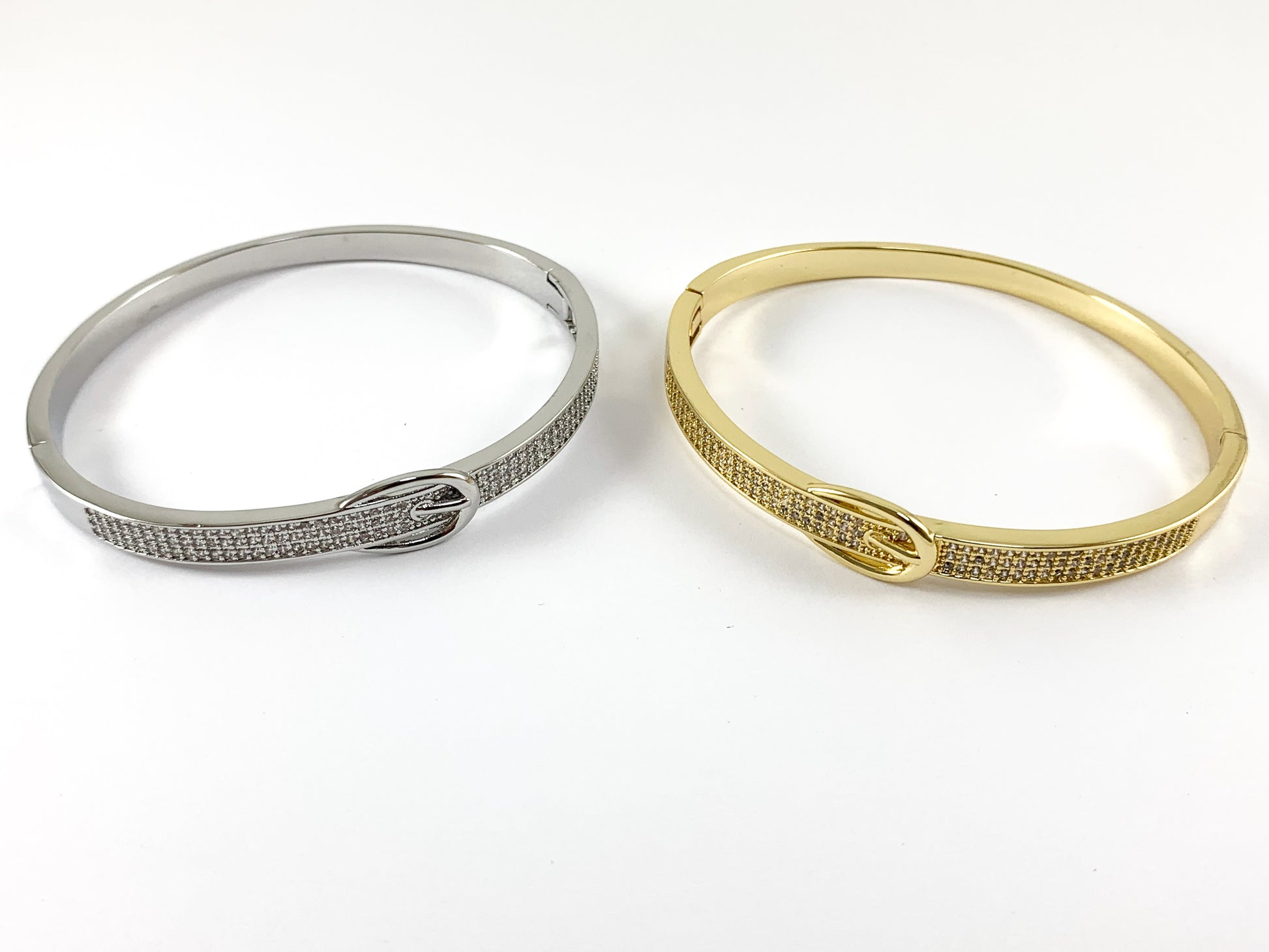 Real Gold/Platinum 18K Plated Copper CZ Pave Belt Buckle Bracelet Cuffs