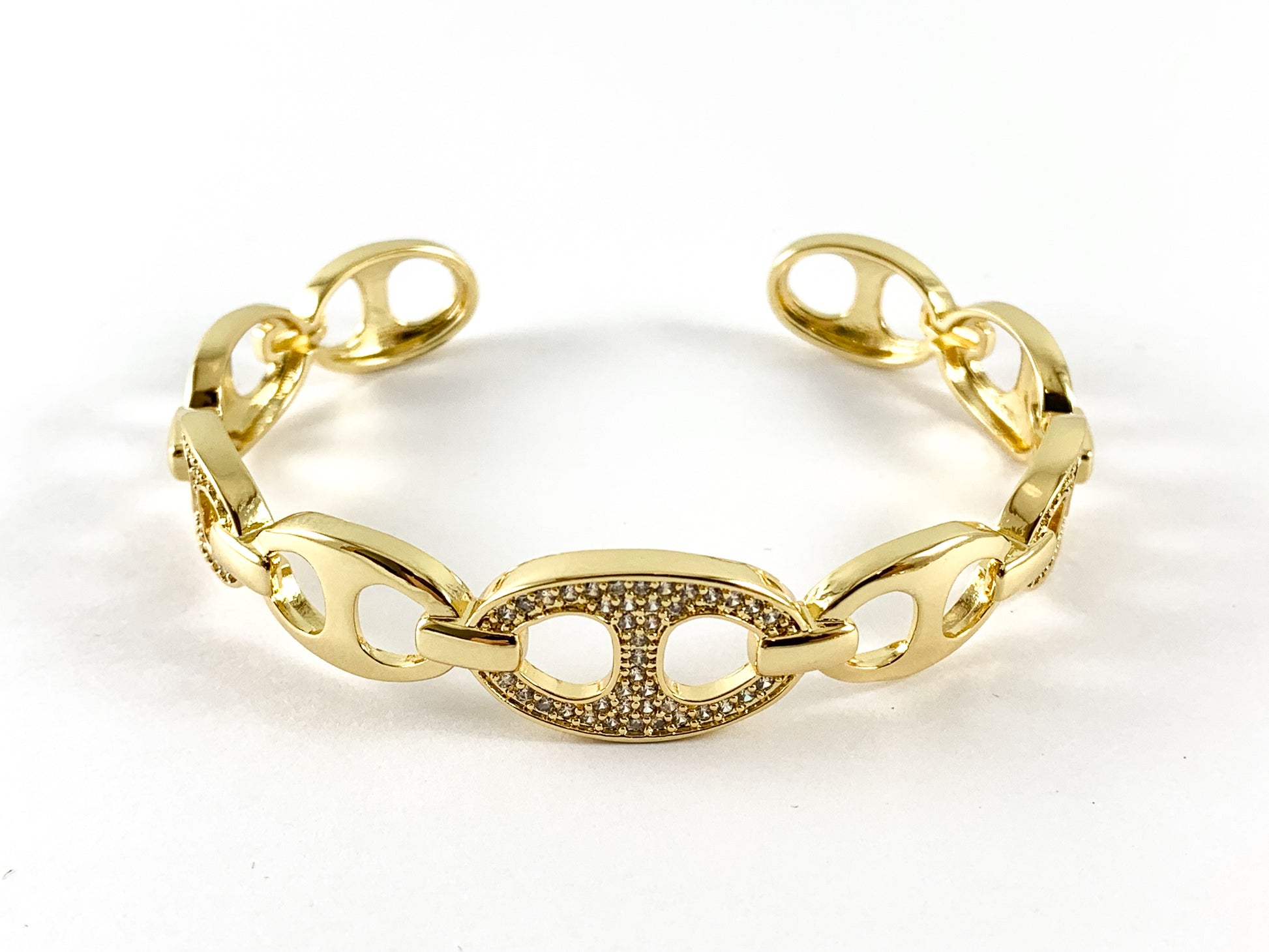 Real Gold/Platinum 18K Plated Copper CZ Pave Bracelet Cuffs/Bangles
