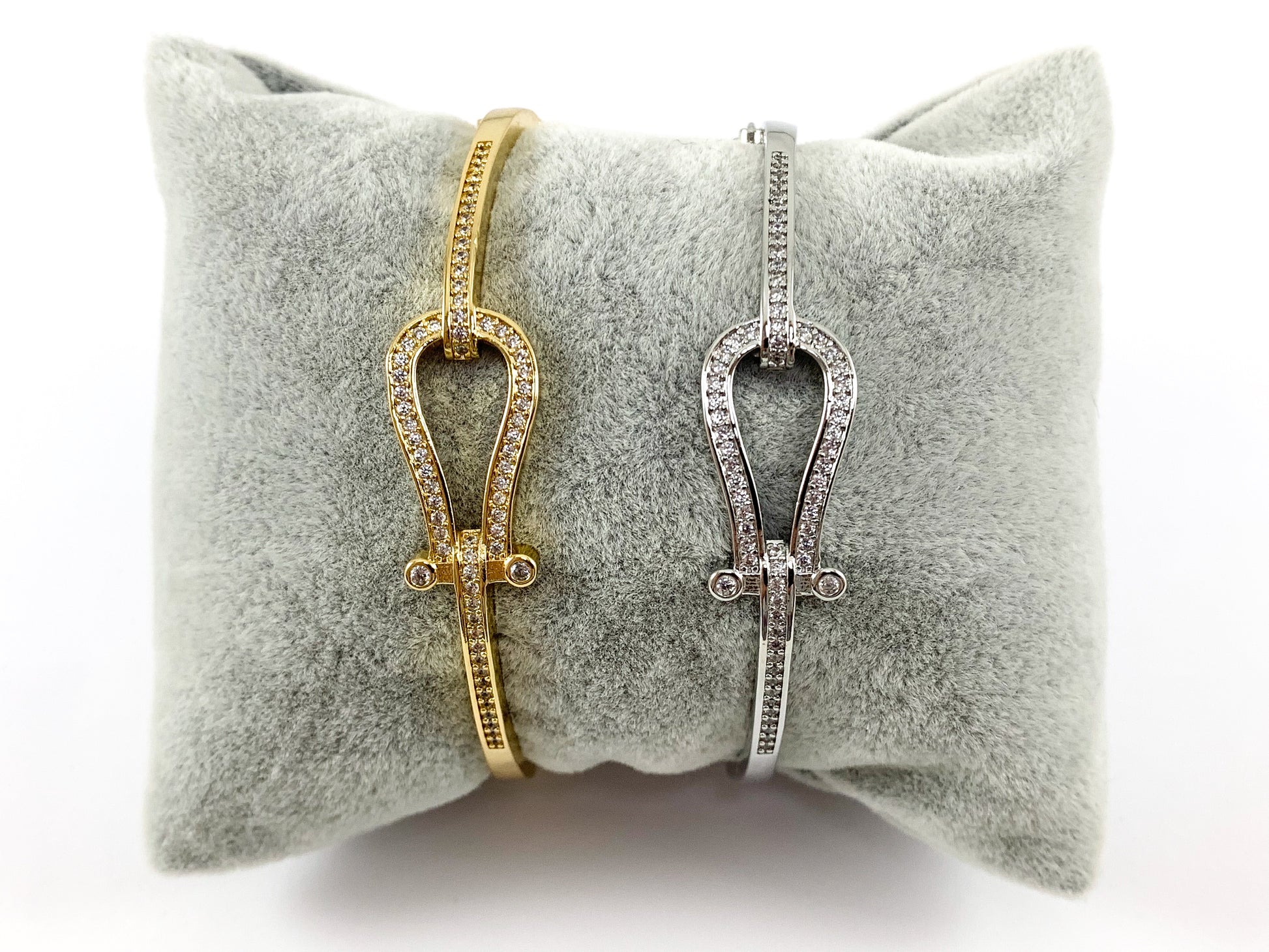 Real Gold/Platinum 18K Plated Copper CZ Pave Buckle Bracelet Cuffs