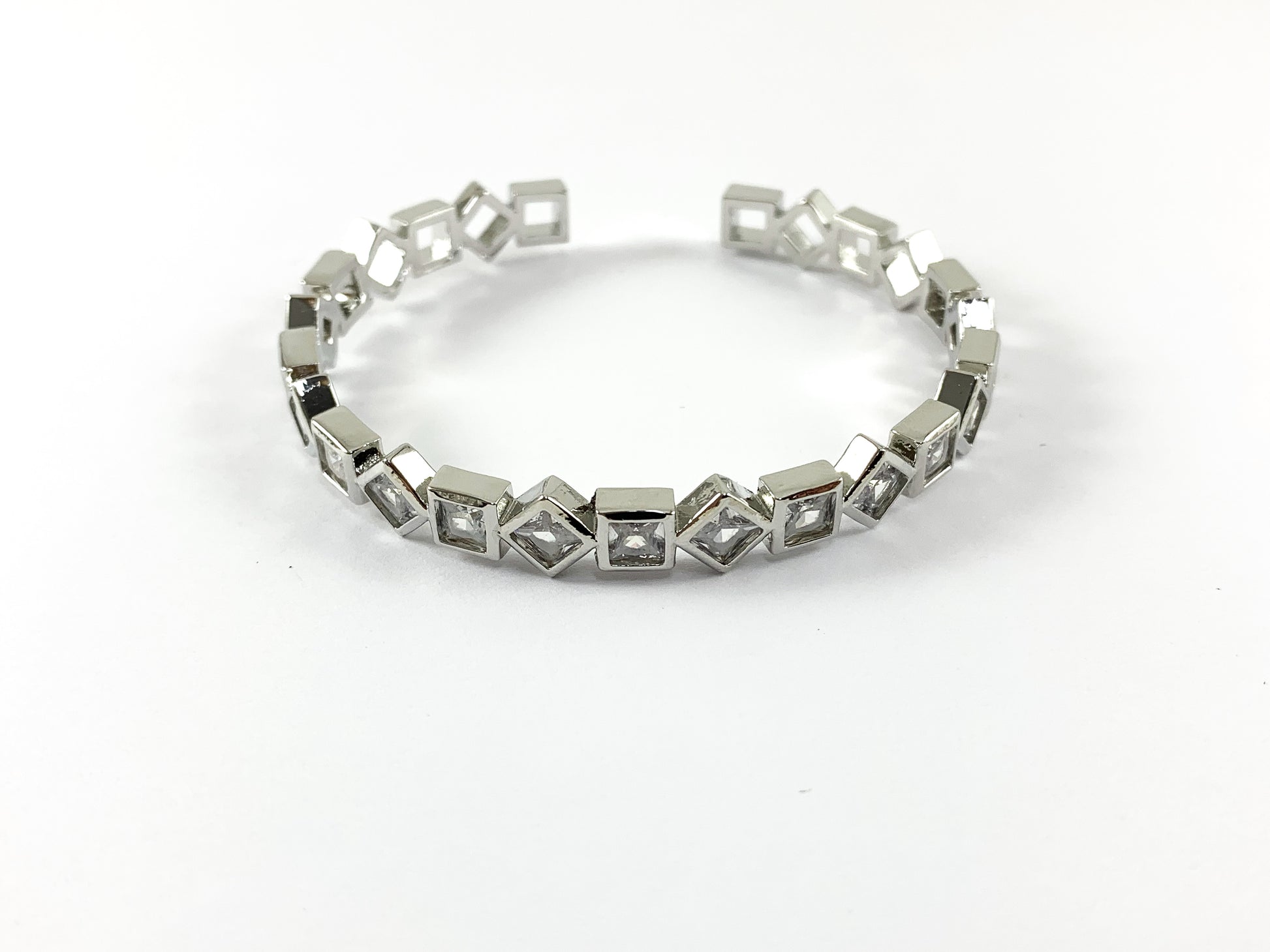 Real Gold/Platinum 18K Plated Copper CZ Pave Geometric Rhinestone Fancy Bracelet Cuffs