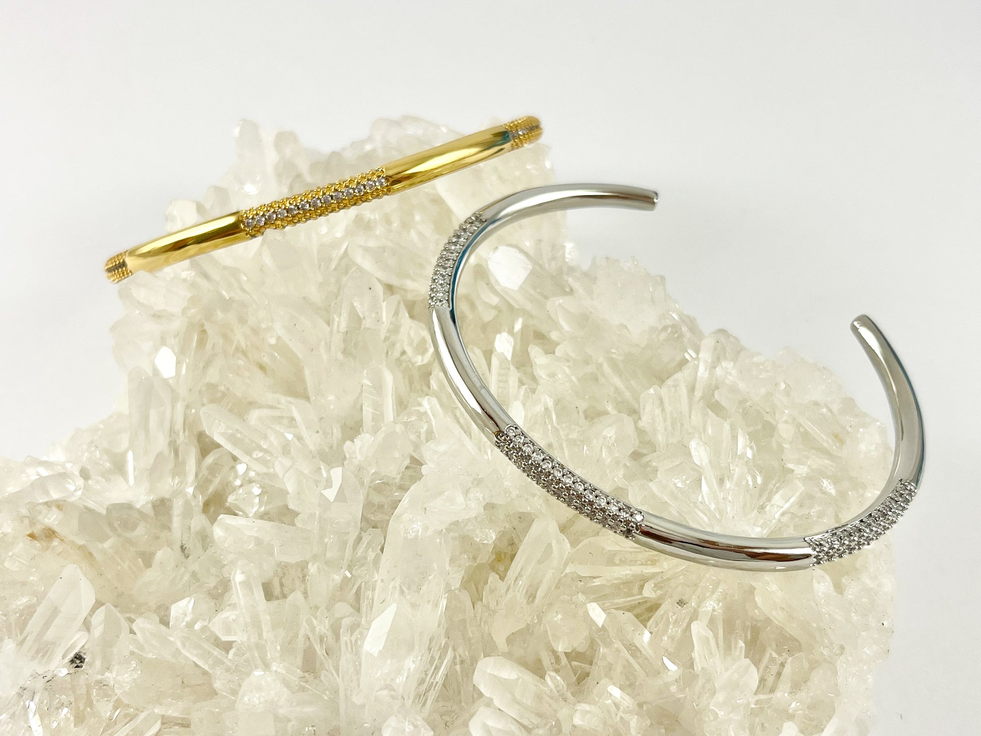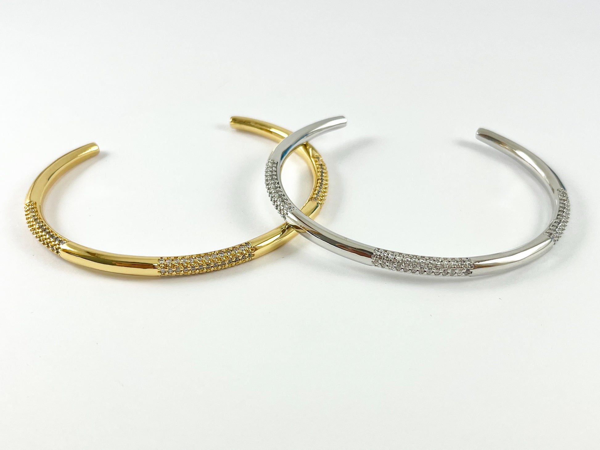Real Gold/Platinum 18K Plated Copper CZ Pave Simple Minimal Rhinestone Bracelet Cuffs 1pc