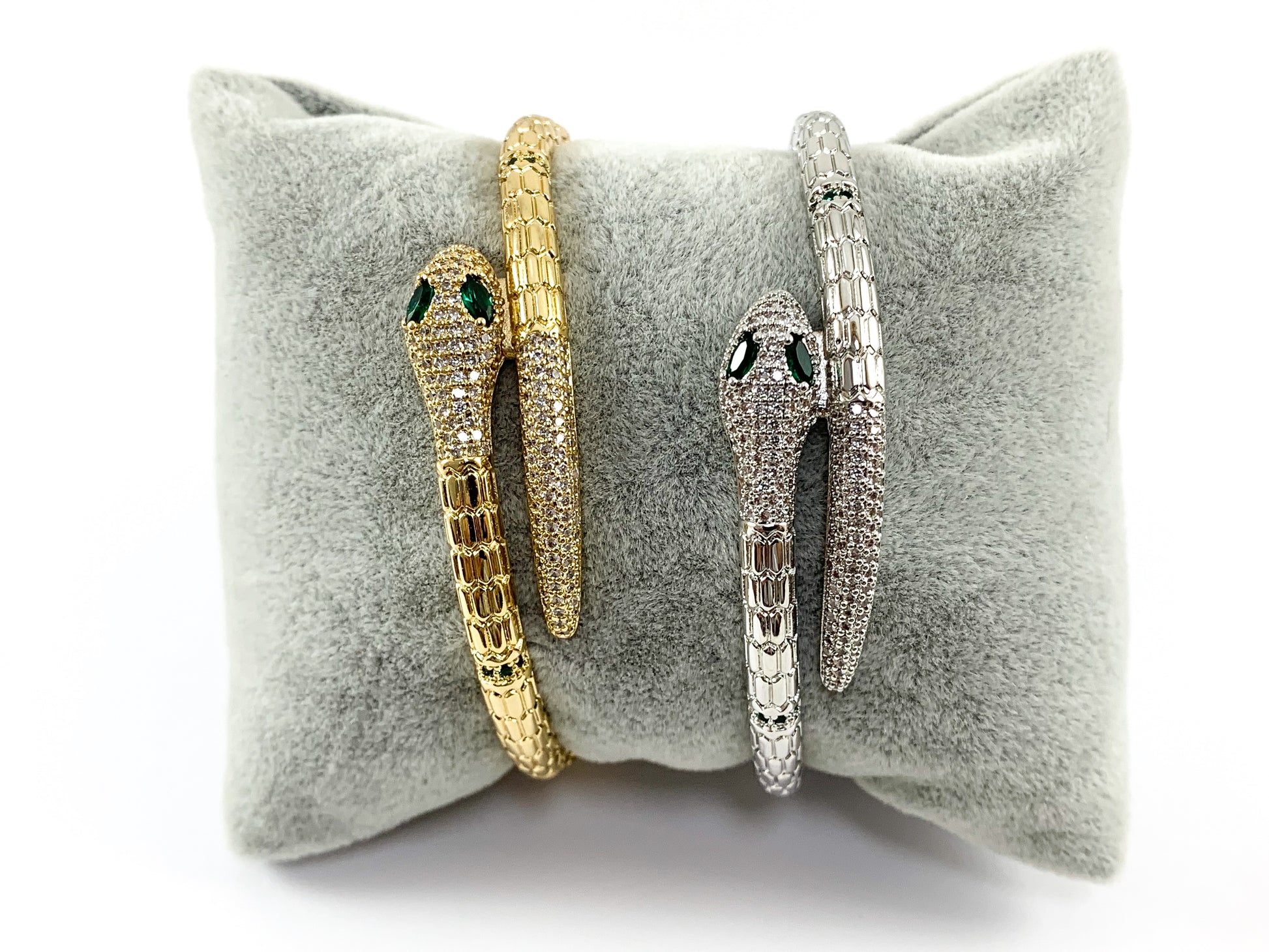 Real Gold/Platinum 18K Plated Copper CZ Pave Snake Bypass Bracelet Cuffs