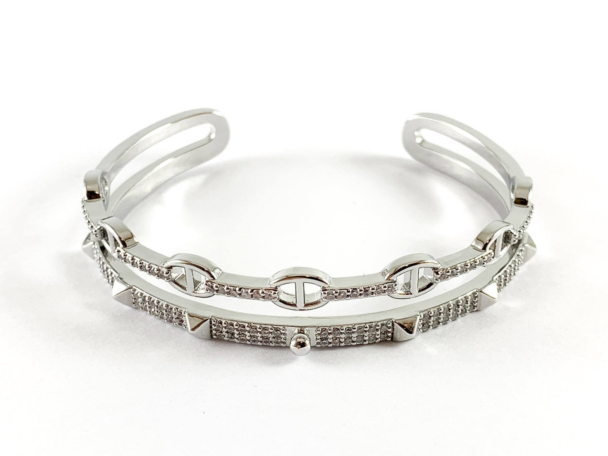Real Gold/Platinum 18K Plated Copper CZ Pave Spike Double Band Shiny Bracelet Cuff 1 pc