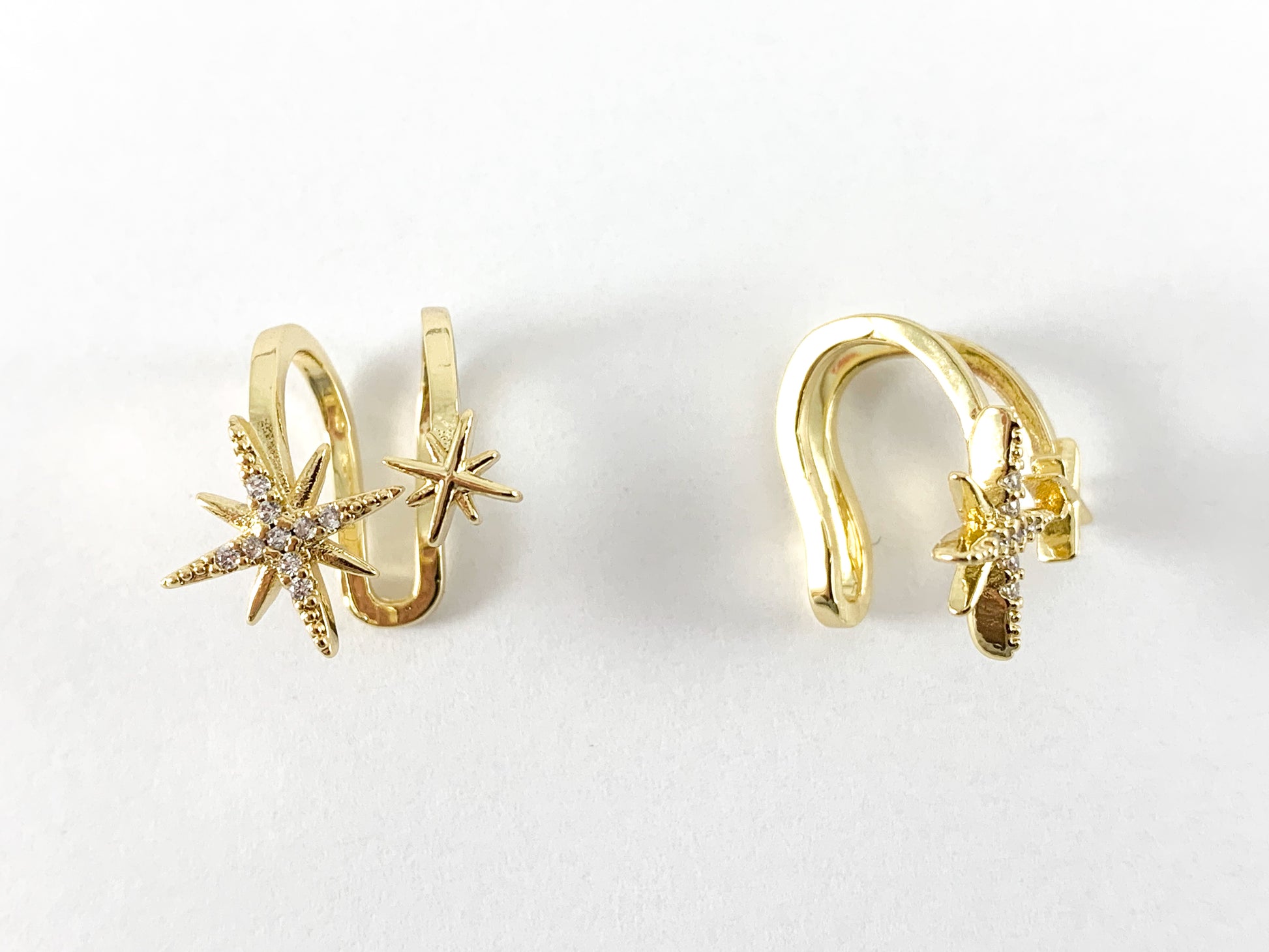Real Gold/Platinum 18K Plated Copper CZ Pave Star Ear Cuffs (No Piercing!!) 6PCS