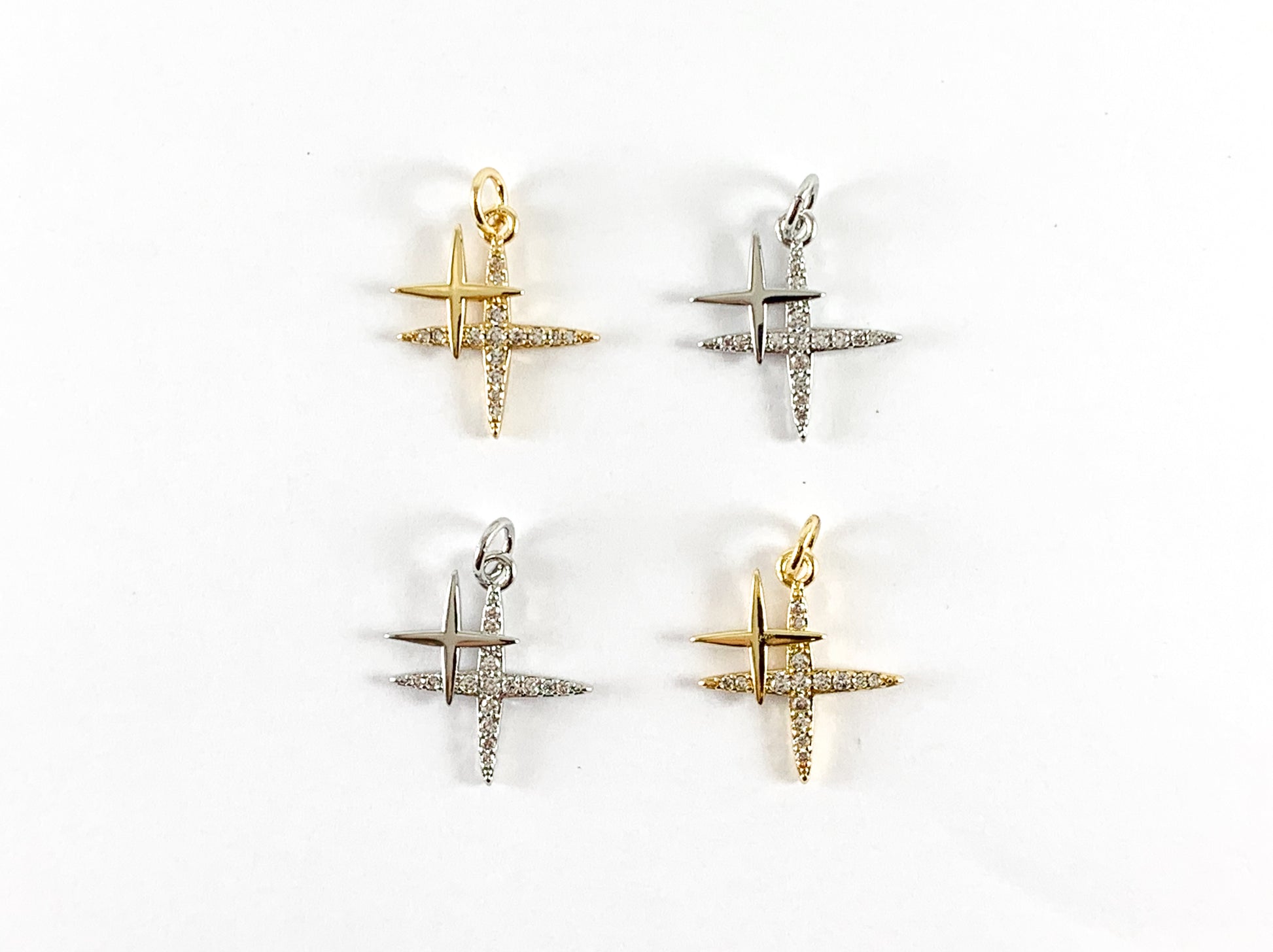 Real Gold/Platinum 18K Plated Micro CZ Pave Celestrial North Star Twinkle Pendant Charm Over Brass 8pcs