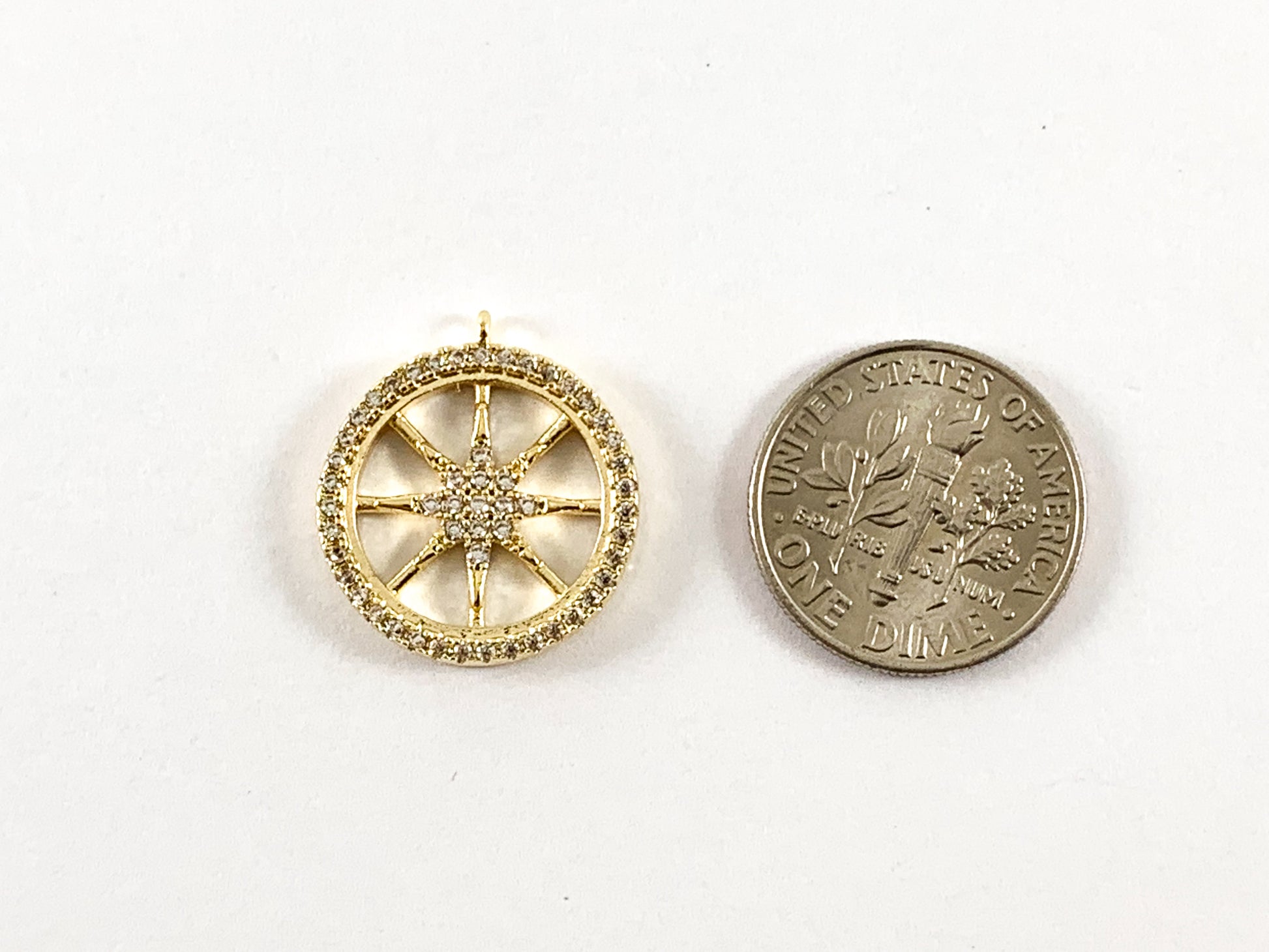 Real Gold/Platinum 18K Plated Micro CZ Pave Crystal Starburst Pendant Charm Over Brass 4pcs
