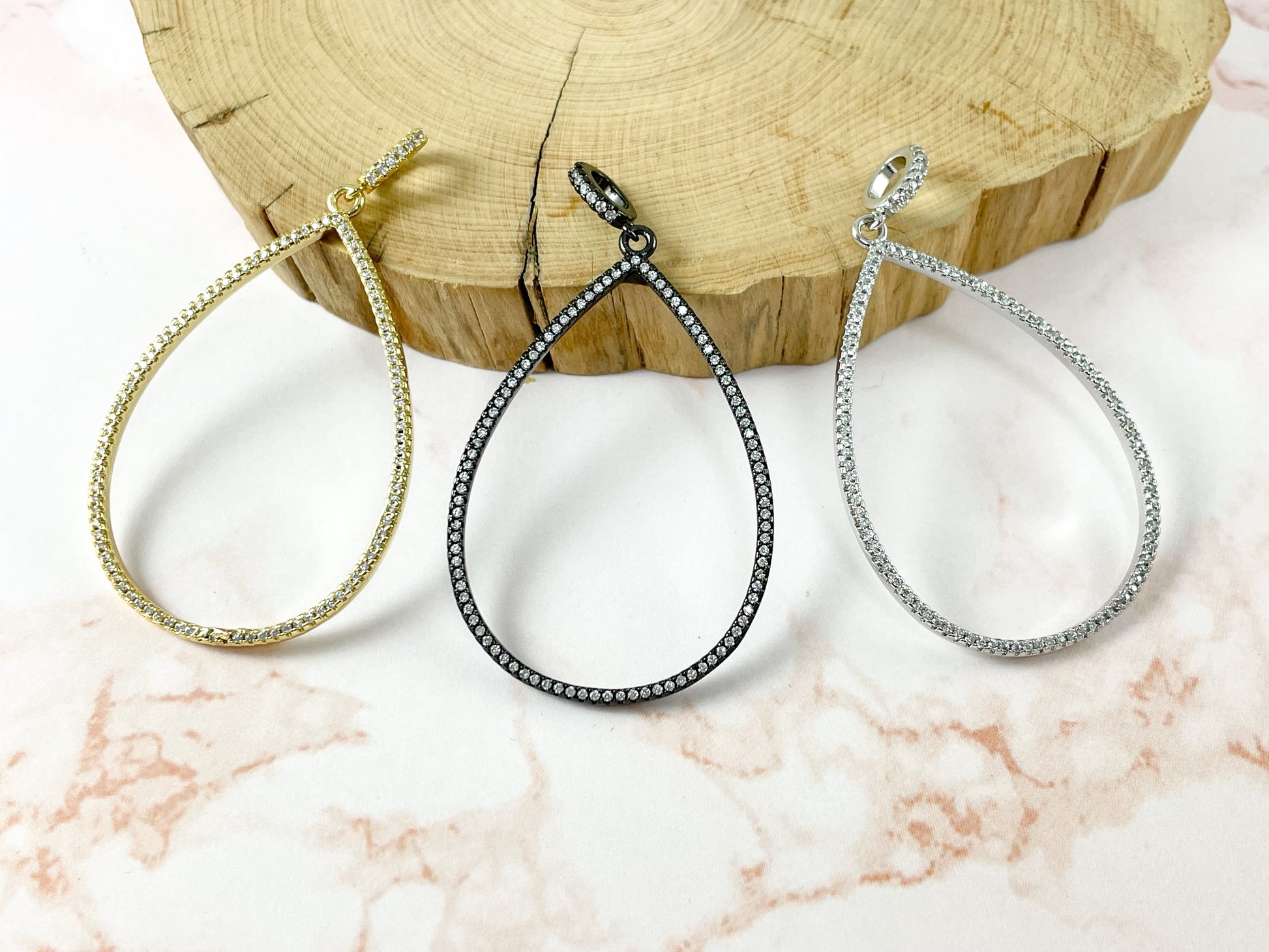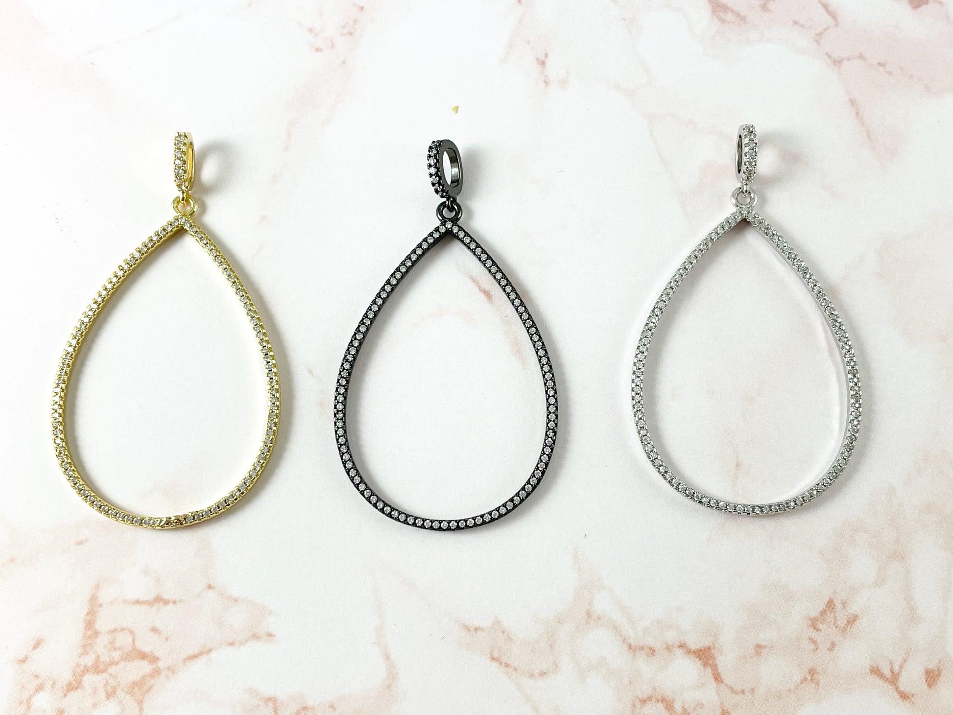 Real Gold/Platinum Gunmetal 18K Plated Micro CZ Pave Rhinestone Teardrop Pendant Over Brass 3pcs