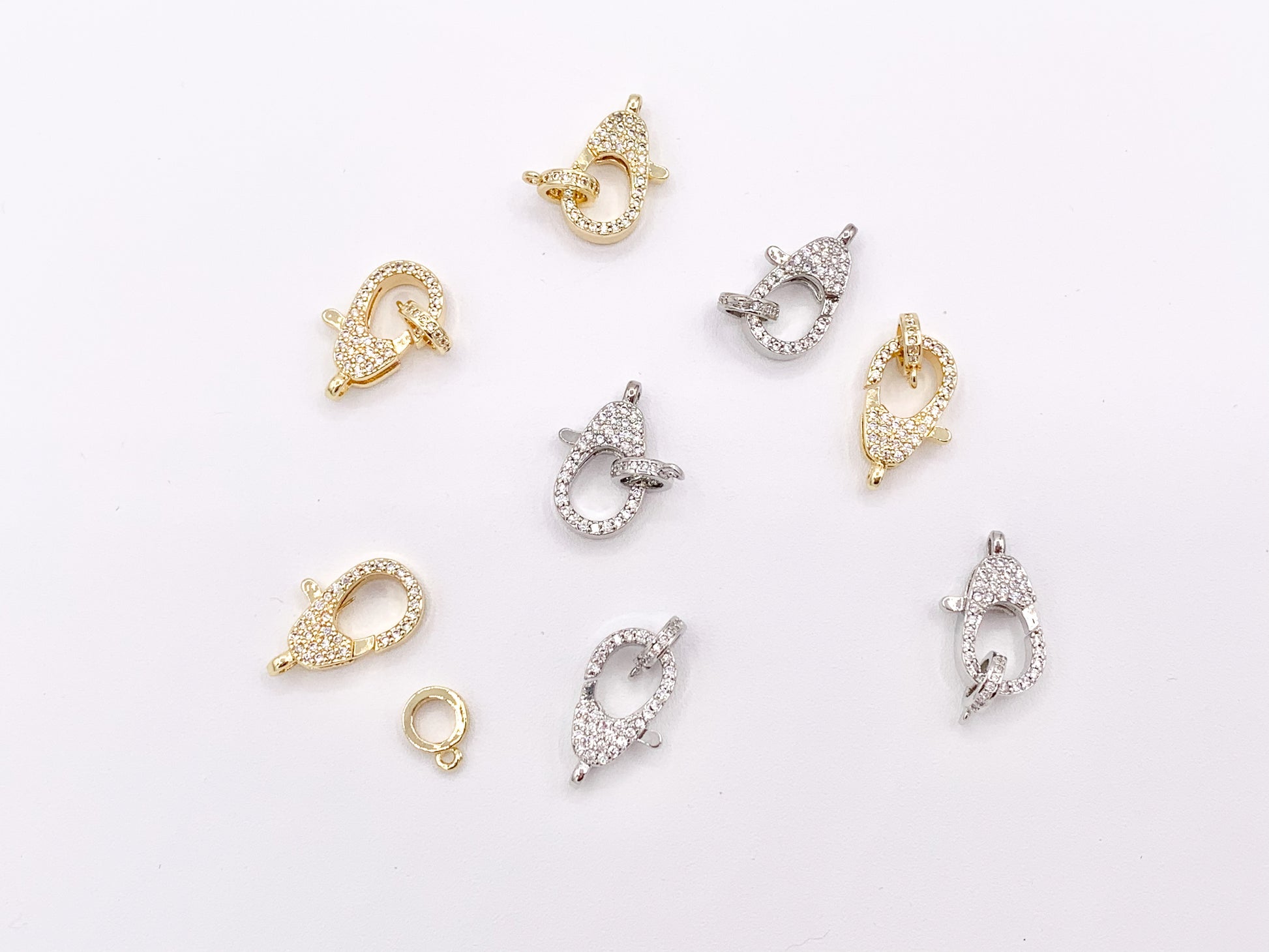 Real Gold/Platinum Plated All Over CZ Pave Luxury Lobster Clasps Over Brass