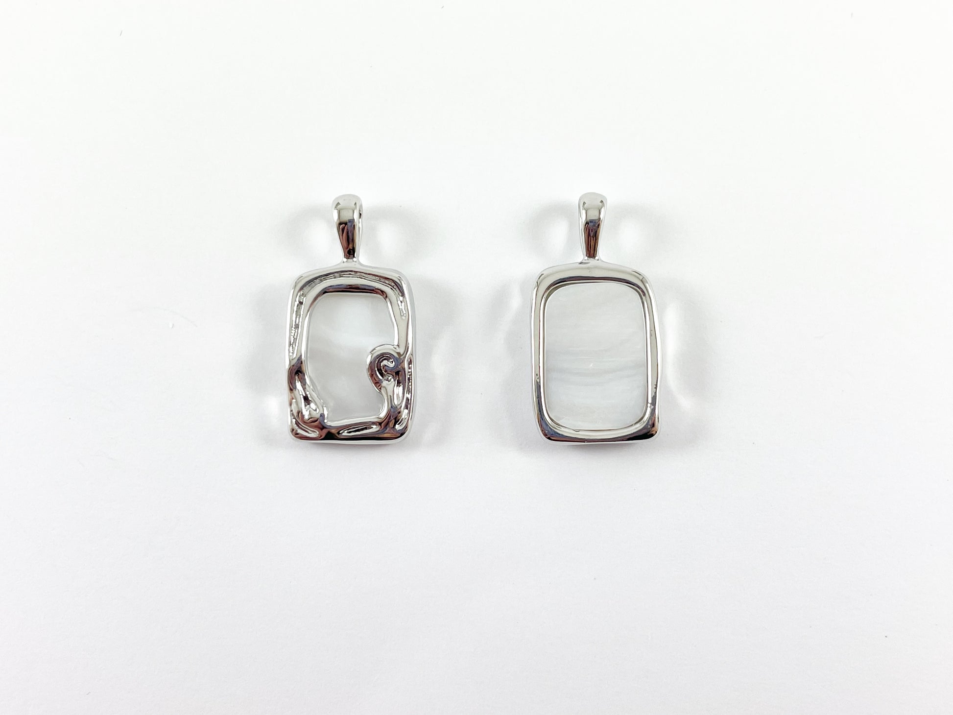 Real Gold/Silver Plated 18K Rectangle Shell Charm/Pendant Over Copper 6 pcs