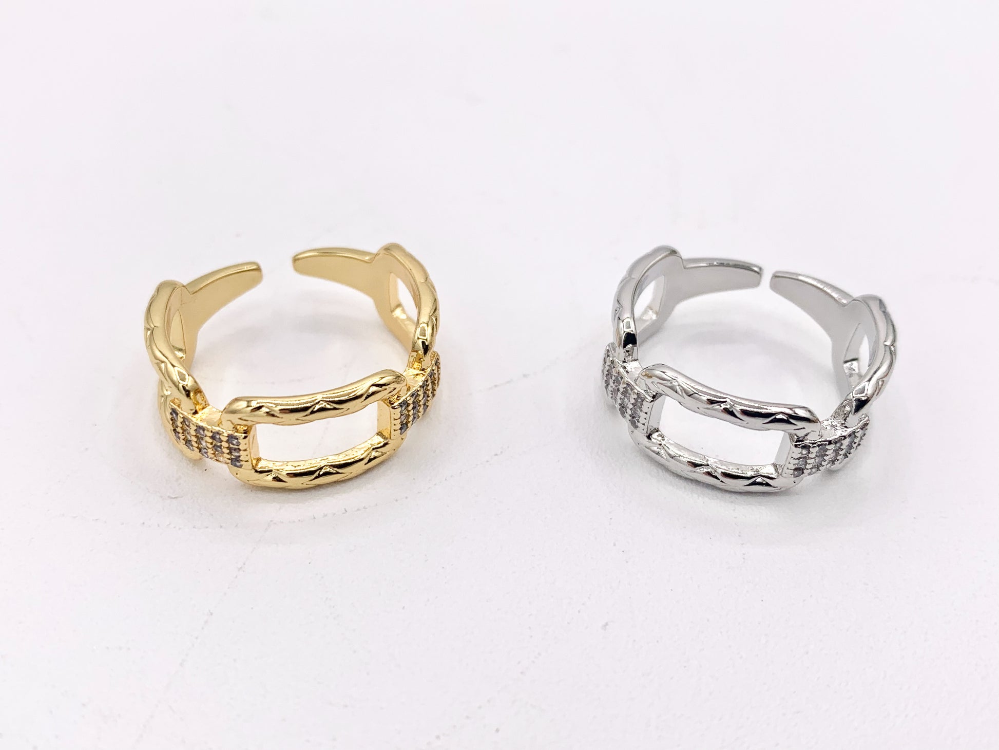Rectangle CZ Pave Link Rings in 18K Gold or Silver Plated Copper
