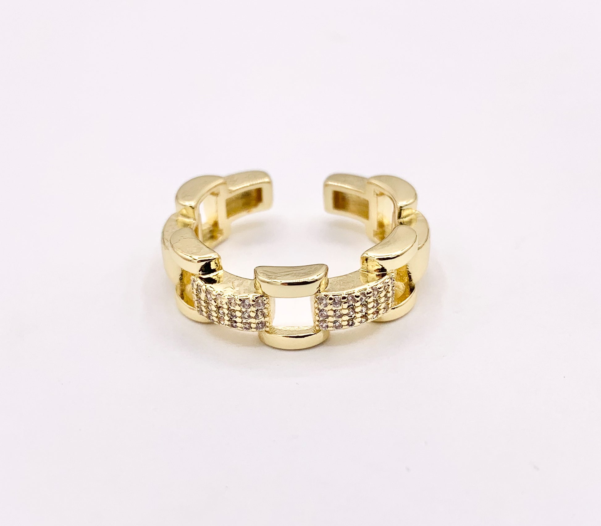 Rectangle CZ Pave Link Rings in 18K Gold Plated Copper