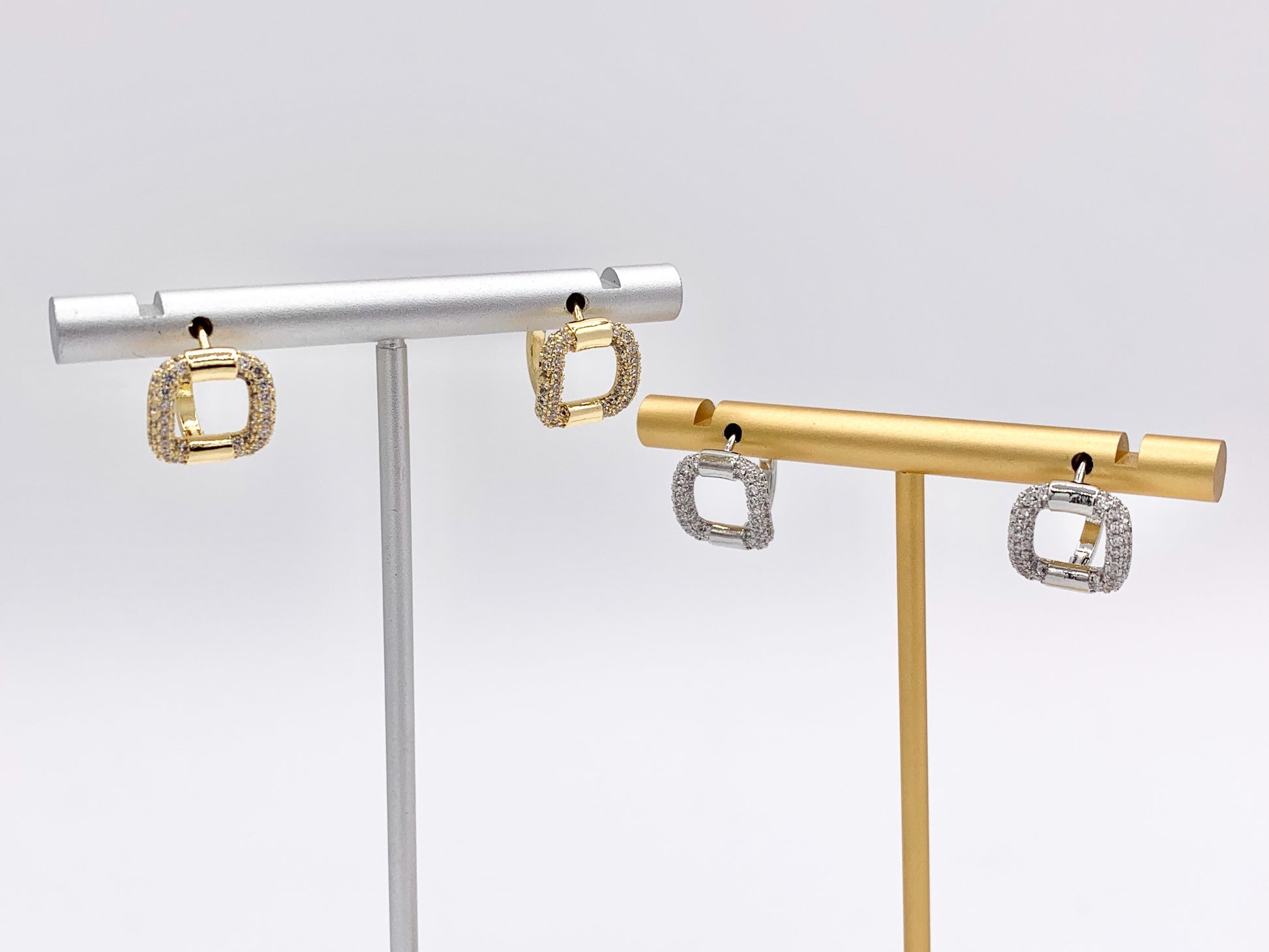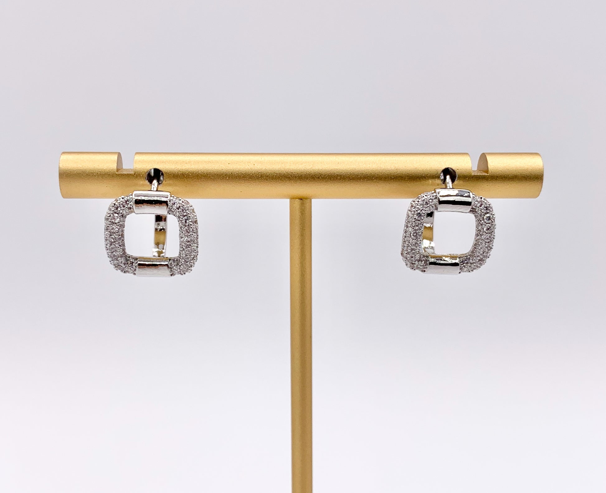 Rhinestone CZ Square 13mm Earring Huggies in 18K Gold or Silver Plated Copper