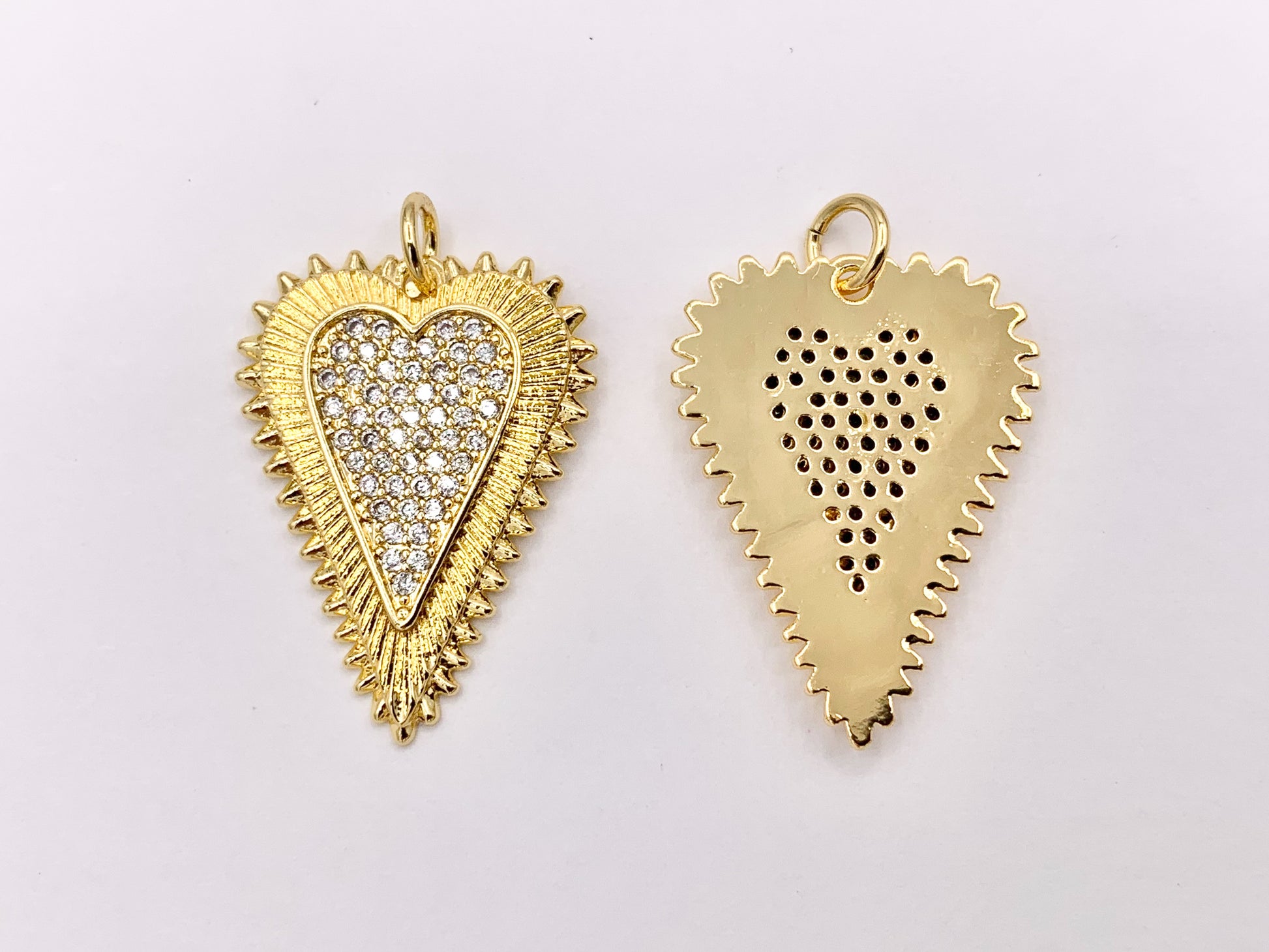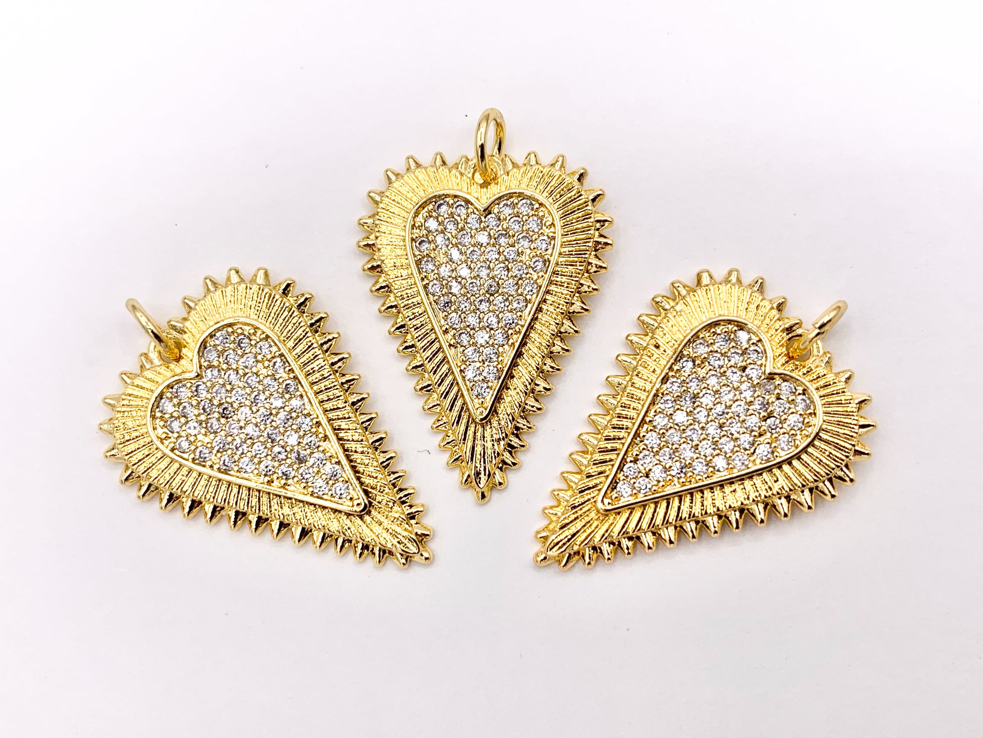 Rhinestone Heart Charm Pendants in CZ Pave 18K Gold Plated Copper