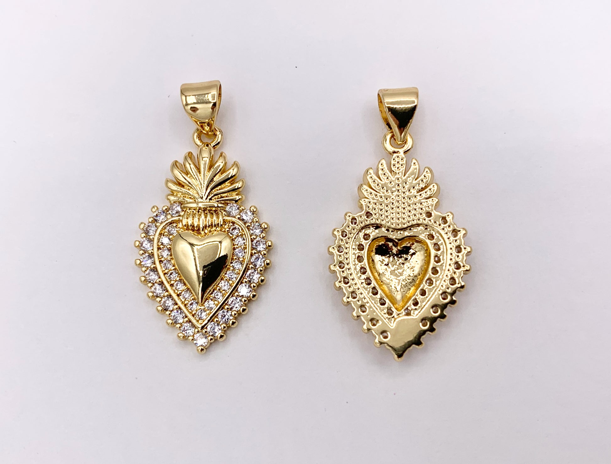 Dainty Rhinestone Heart Charm Pendants in CZ Pave 18K Gold Plated Copper