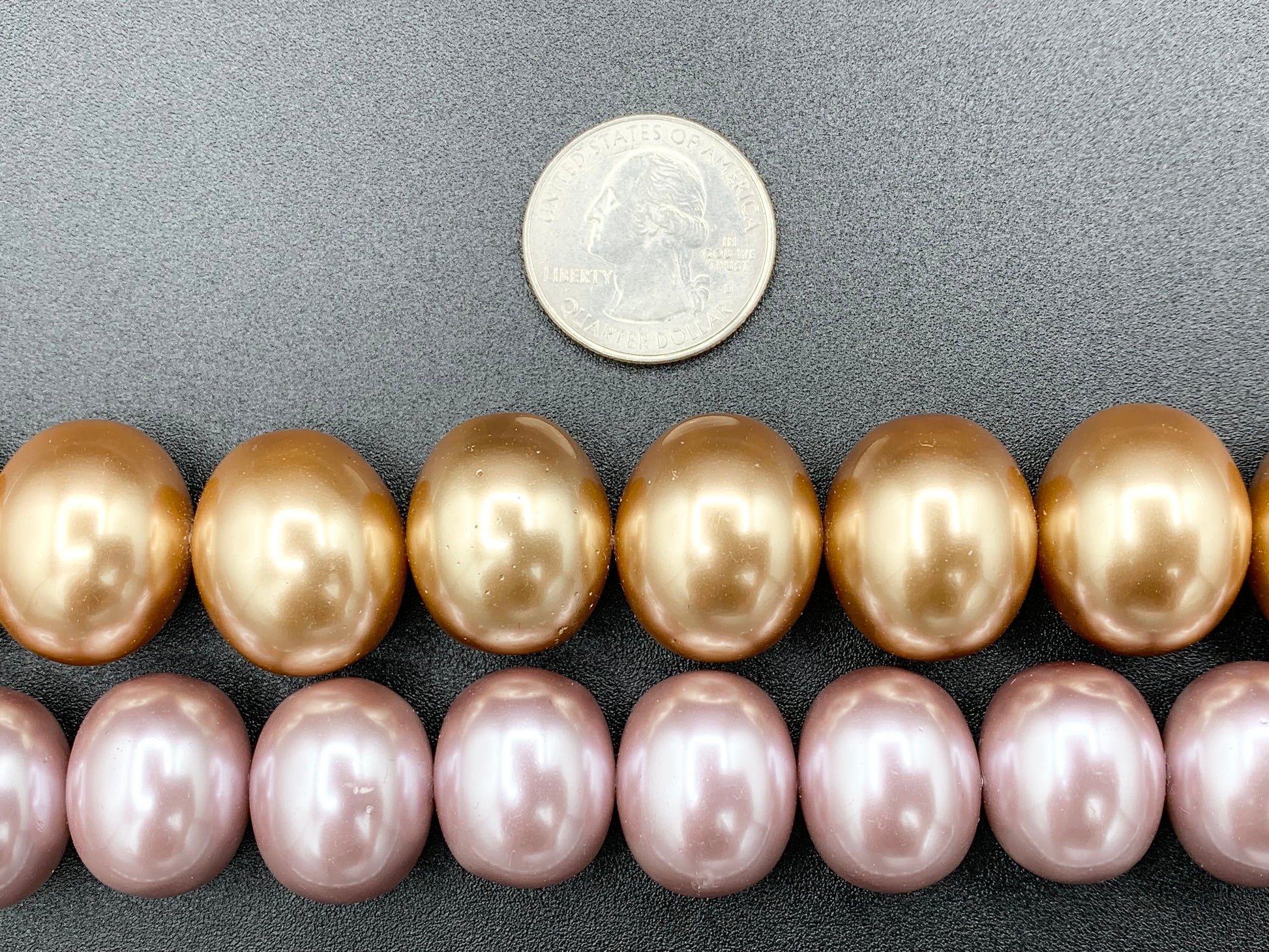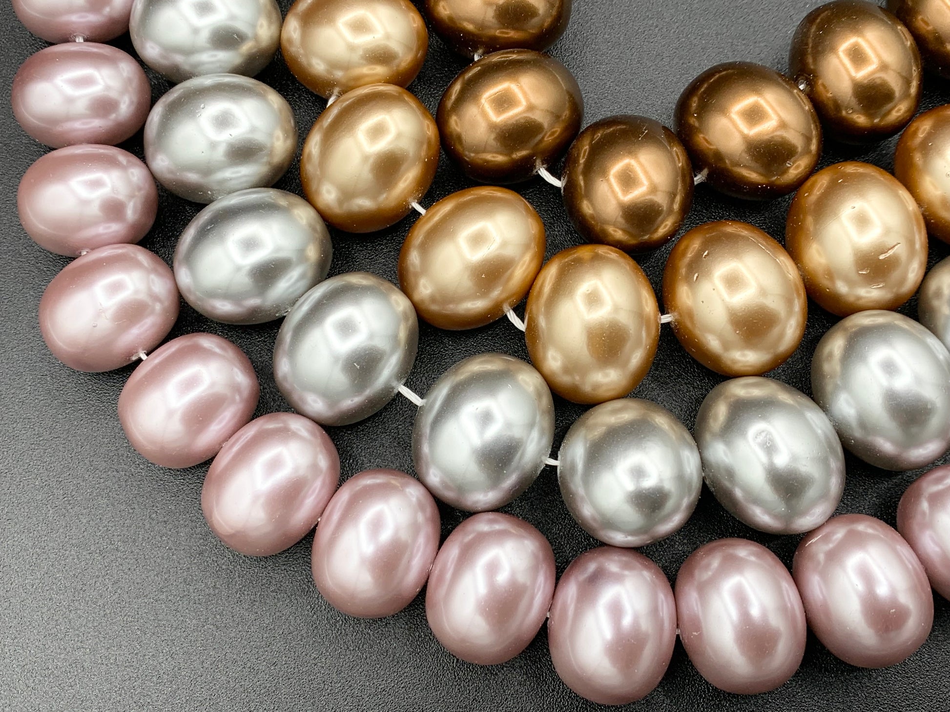 Shell Pearl Egg Shape Beads Pearl Powder Coated Shell Oval Beads Around 15-16" Silver, Champagne, Brown, Purple Color (1 Strand)