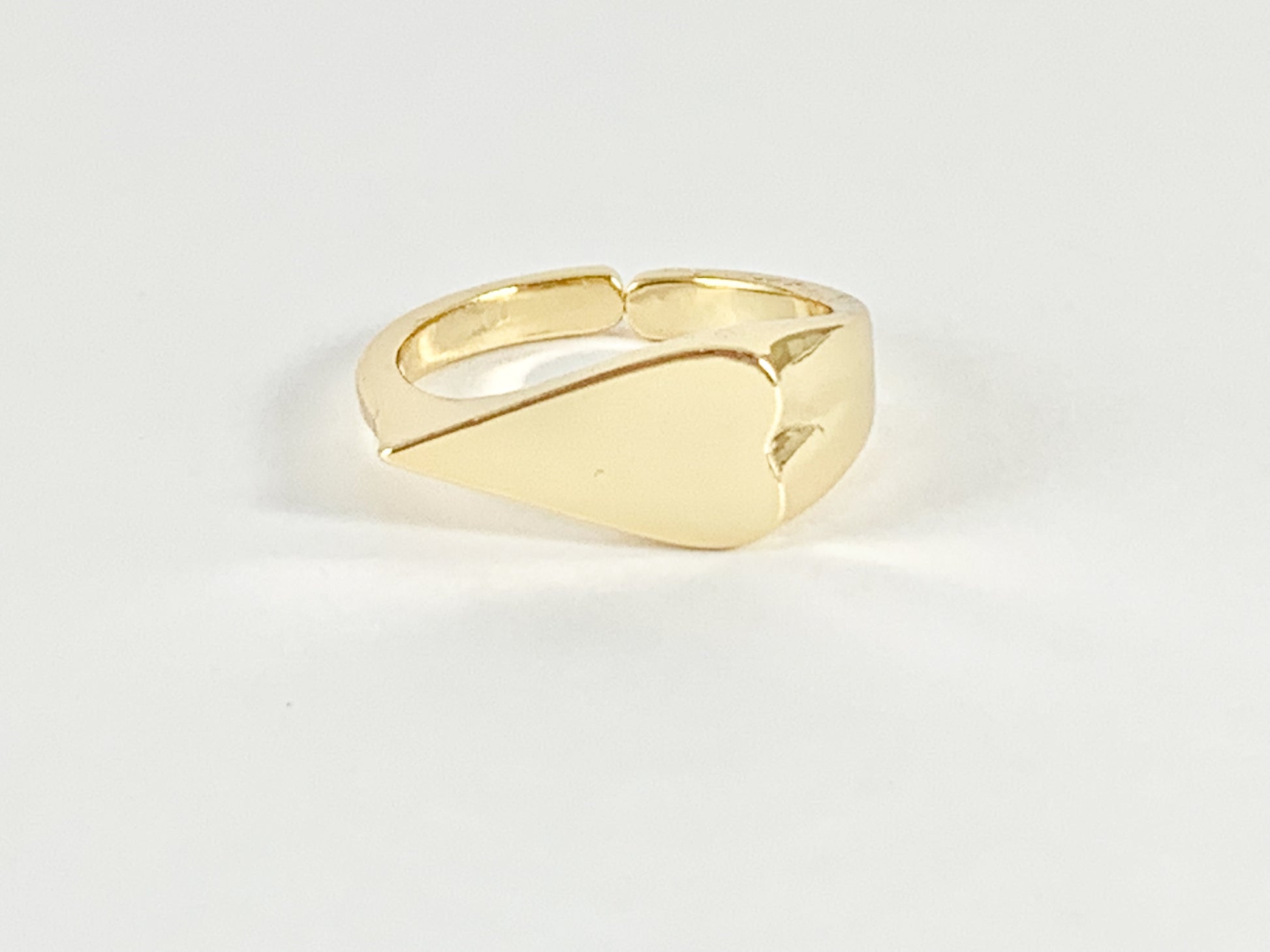 Side Heart Signet Adjustable Ring in Real Gold 18K Plated Copper
